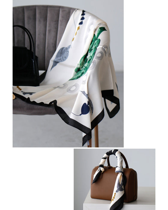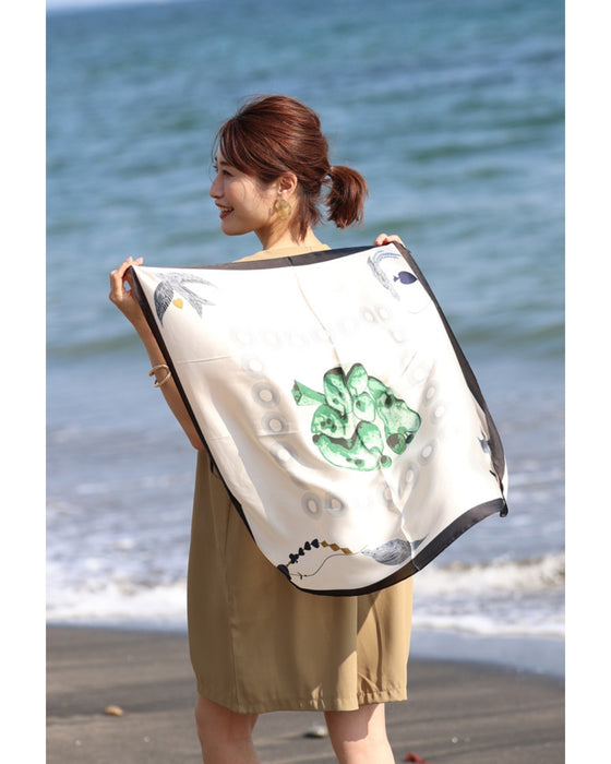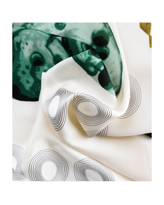 Scarf, Patterned, Spade pattern, Accessory, Large, Large scarf, Fashion accessory, Rectangular, Stylish, Ivory, Green, Spring, Summer, Autumn, Winter, Hand washable, Women's fashion, Ehre style, Petite, Ehrestyle
