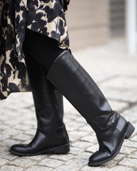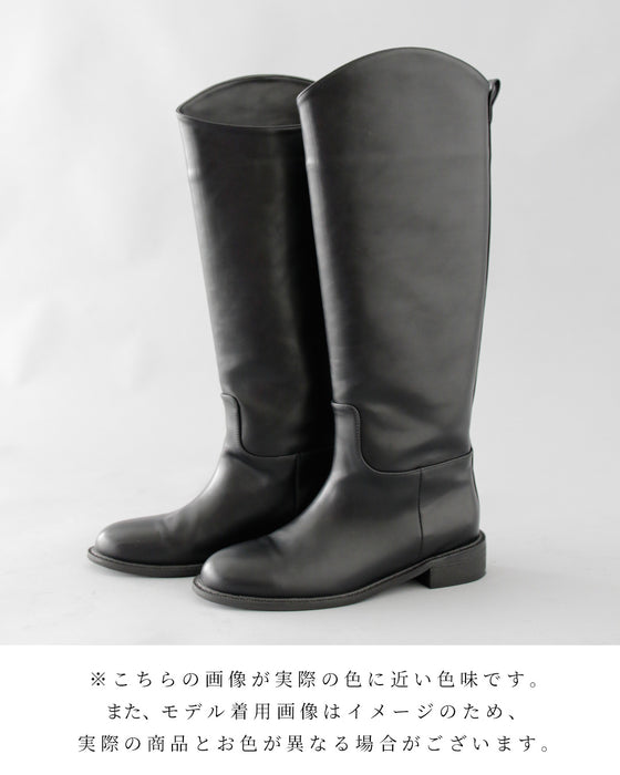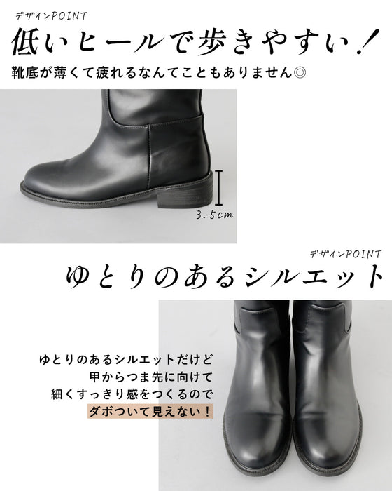 Boots, long boots, shoes, women's shoes, round toe, low heel, Reiko collaboration, casual, simple, stylish, plain, beautiful legs, black, black, diagonal cut, size range, 36, 37, 38, 39, autumn, winter, women's fashion, Ehre style, style, Ehre style