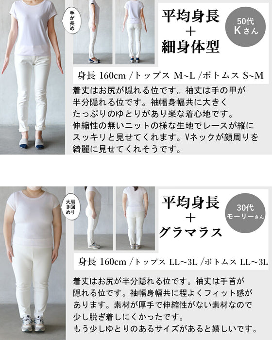 The drop shoulders create a relaxed atmosphere. The shallow wide V-neck creates a relaxed look and makes you look slender.