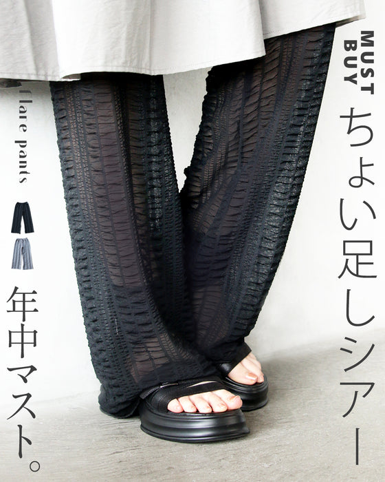 ■Sheer flare pants are a must-have all year round.