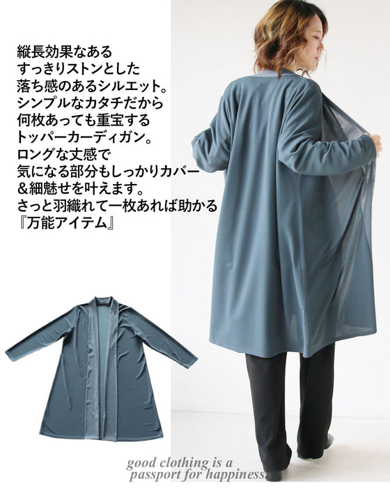 ■縦長効果のあるすっきりストンとした落ち感のあるシルエット。シンプルなカタチだから何枚あっても重宝するトッパーカーディガン。ロングな丈感で気になる部分もしっかりカバー&細魅せを叶えます。