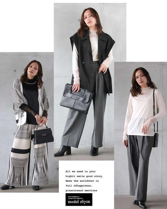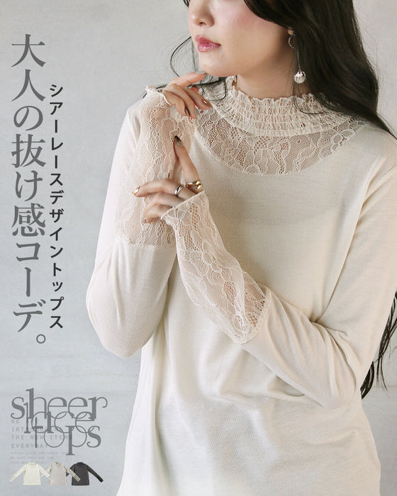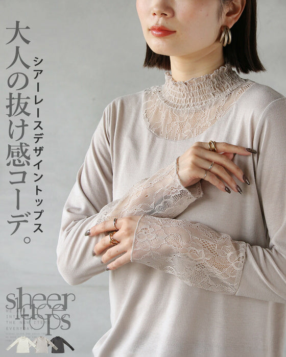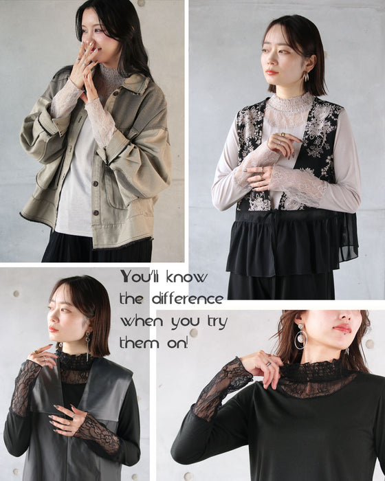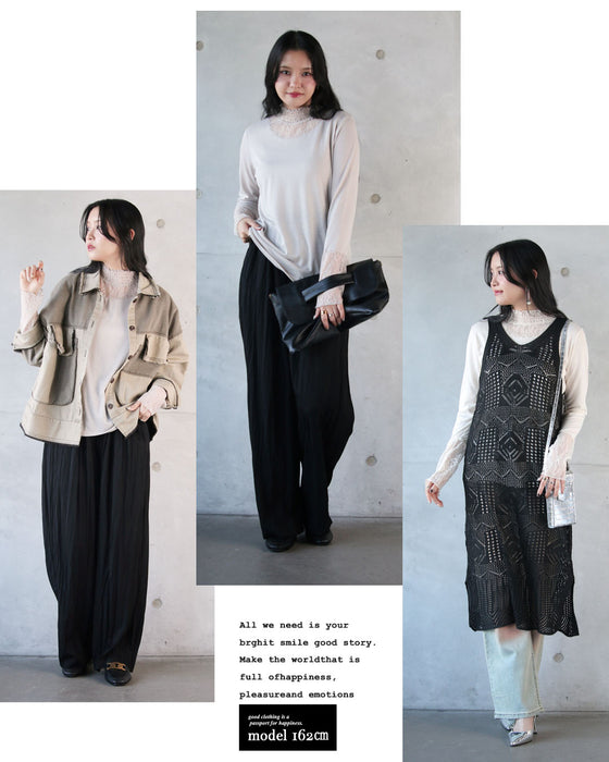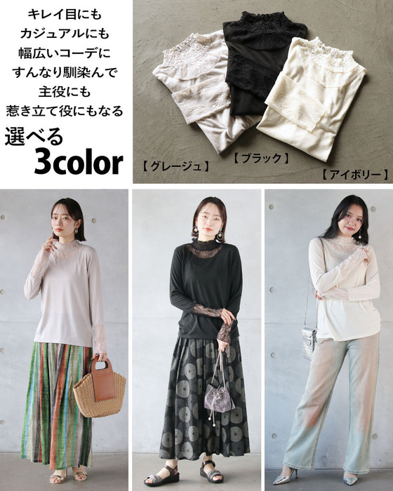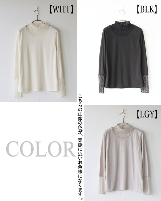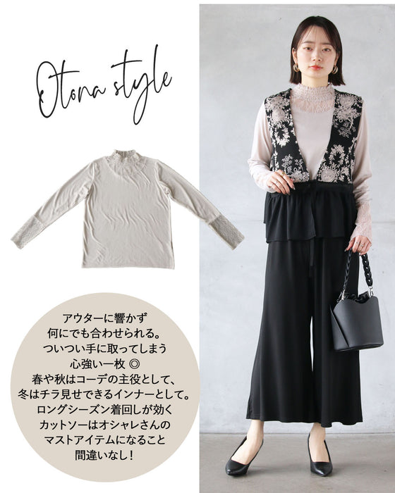 ■女らしく上品に、でもほんのり甘さも欲しい。欲張りな大人の為のレーストップス。春や秋はコーデの主役として、冬はチラ見せできるインナーとして。ロングシーズン着回しが効くカットソーはオシャレさんのマストアイテムになること間違いなし!アウターに響かず何にでも合わせられるからついつい手に取ってしまう心強い一枚。
