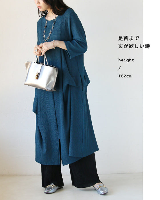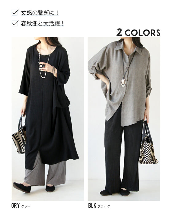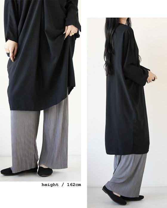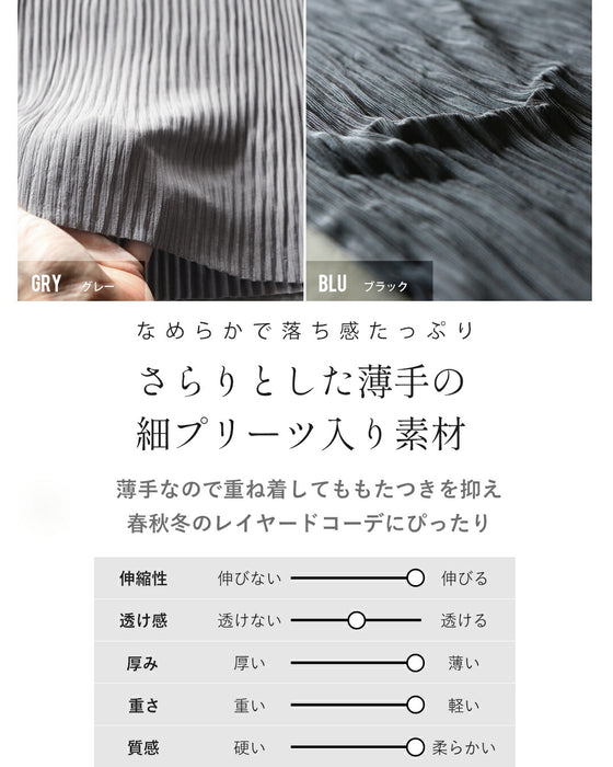 軽やかでさらりとした細プリーツ入りの生地を使用。 軽いので重ね着してもたつきを抑えて春秋冬のレイヤードコーデにぴったりです。