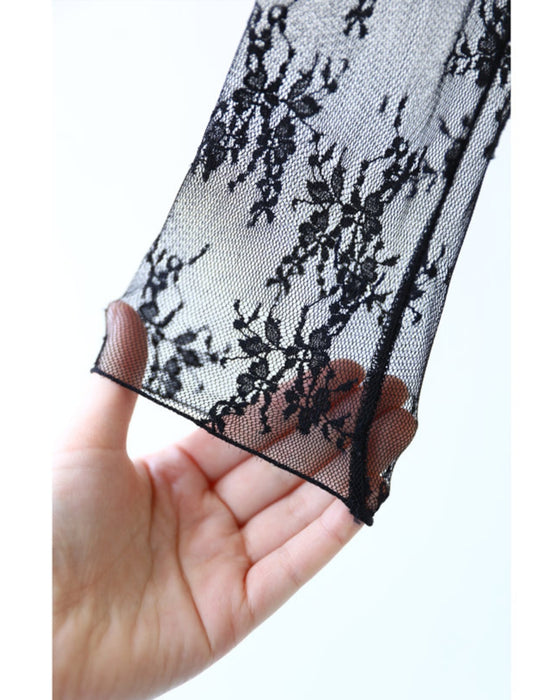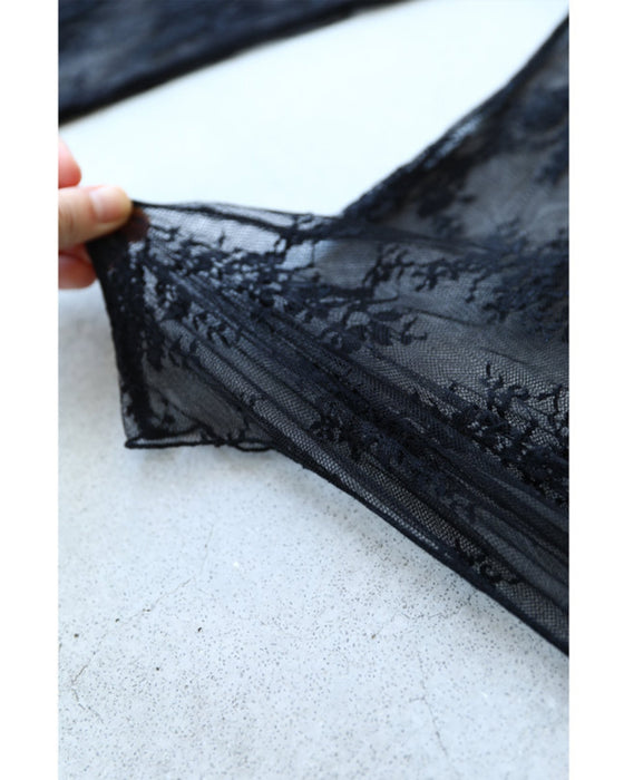 A luxurious and elegant inner top made from tulle lace fabric with fine mesh tulle and small floral patterns embroidered on it.