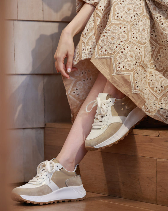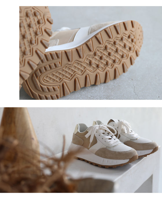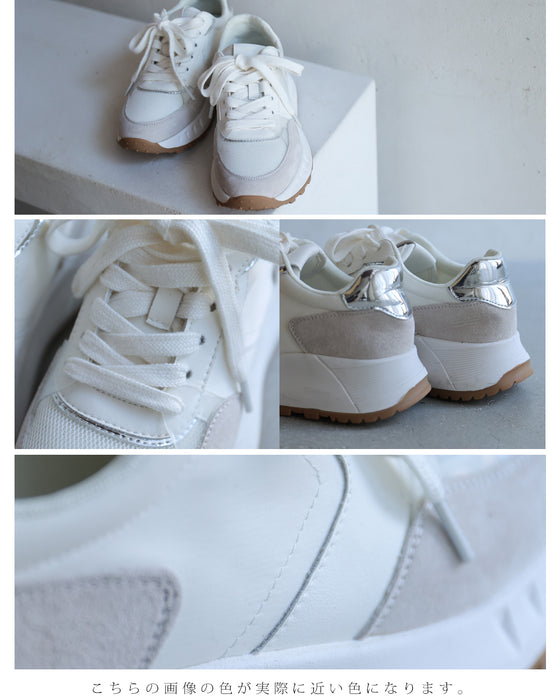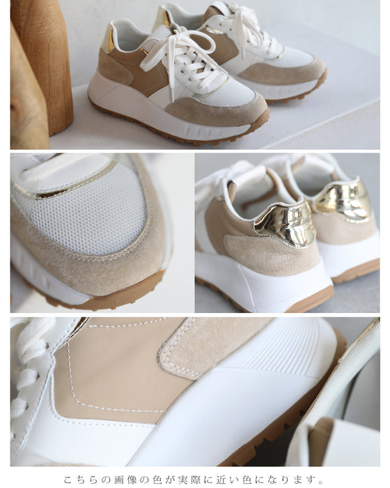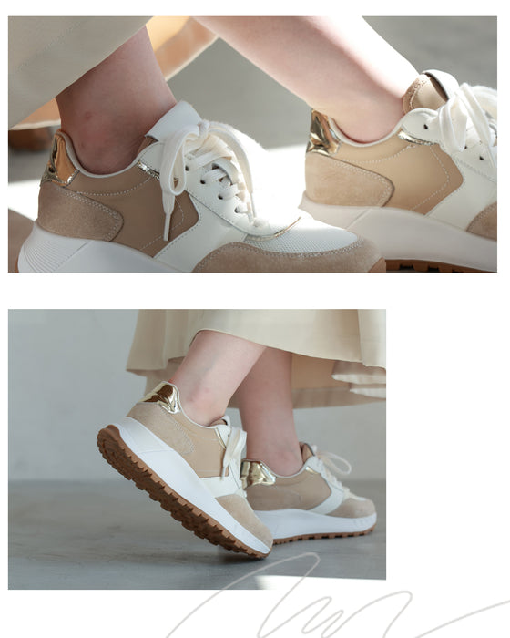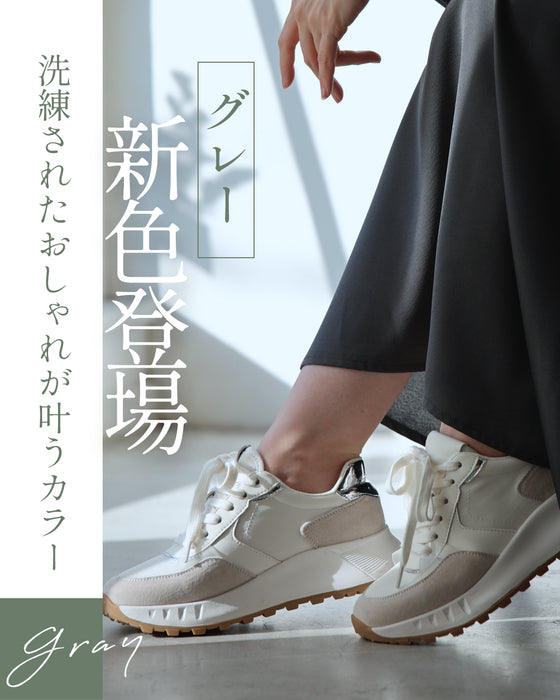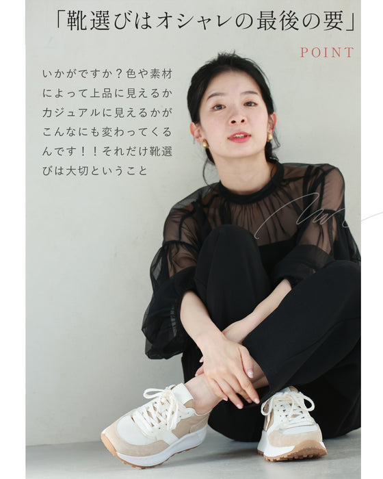 Suede, enamel, synthetic leather, mesh material, etc. The combination of various fabrics makes it easy to match with your outfit. The design is easy to match with any season and is perfect even from the back.