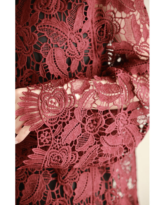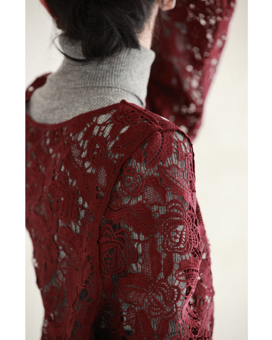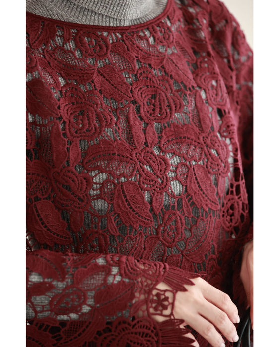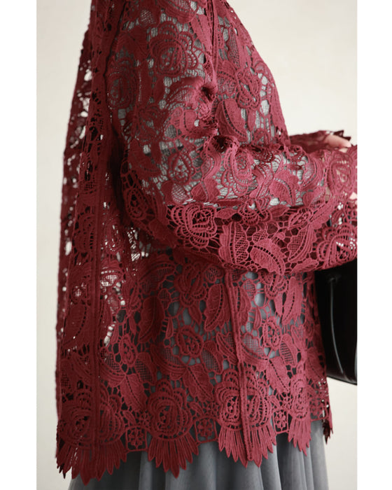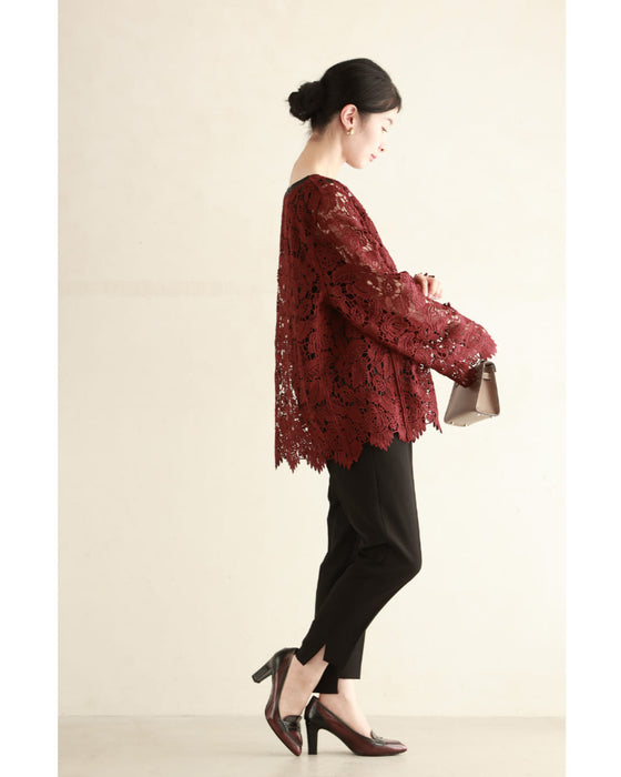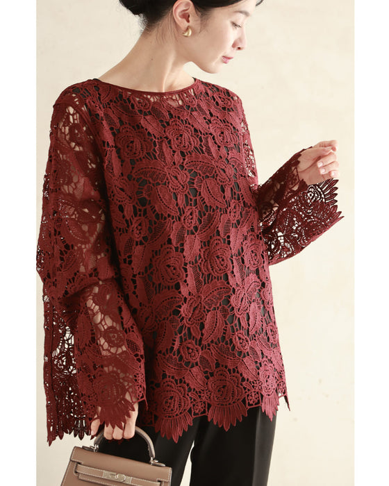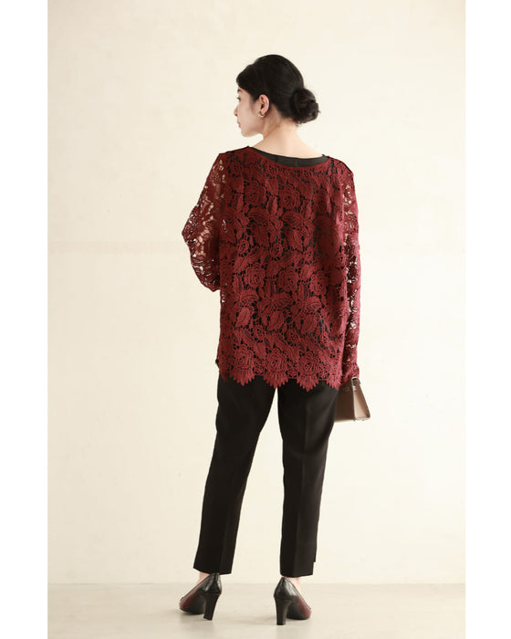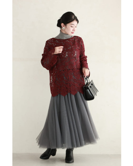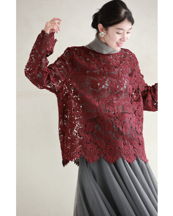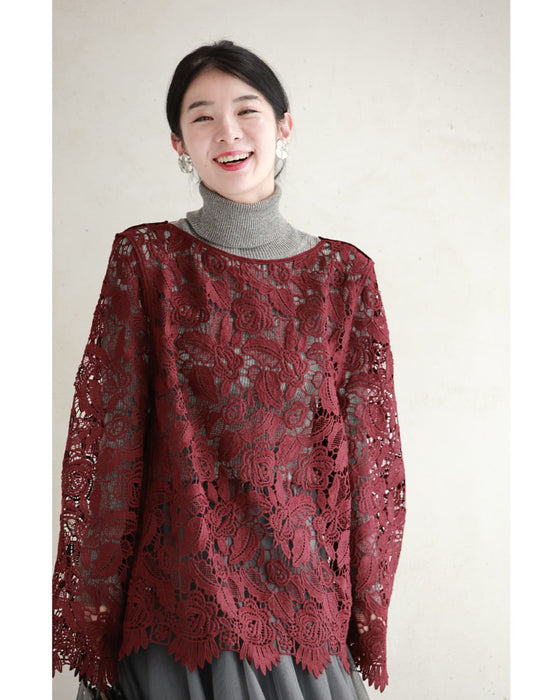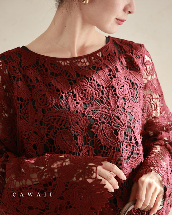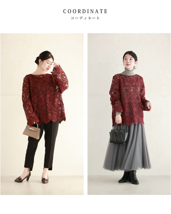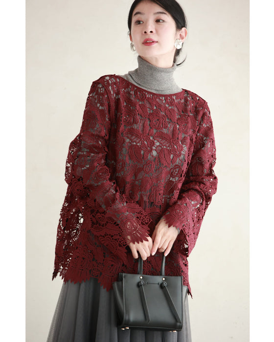 ■Full-flower lace for a classy and elegant look <br>The full-flower lace design creates a beautiful silhouette from any angle. This top features deep colors, making it perfect for autumn and winter outfits. It is chic yet glamorous, making it perfect for special occasions.
