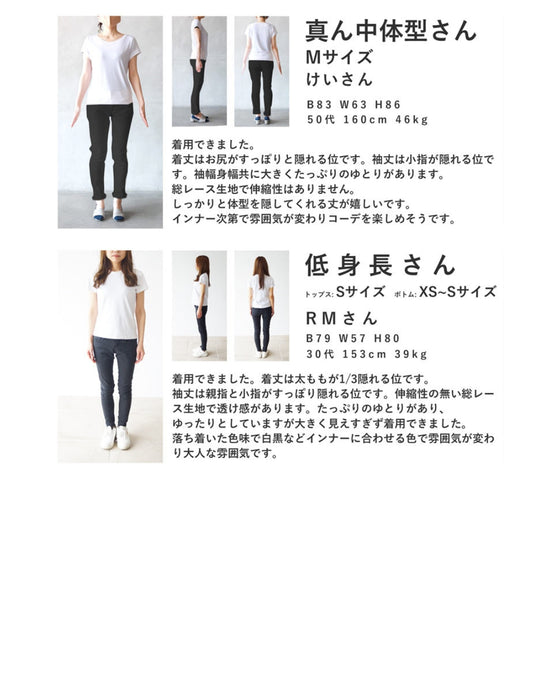 ■ Moderate thickness of lace fabric <br> Moderate thickness of lace fabric is designed to be sheer but not noticeable on the inner layer. This makes it easy to wear with confidence. It is an item that you can wear with confidence, especially in the office or at parties.