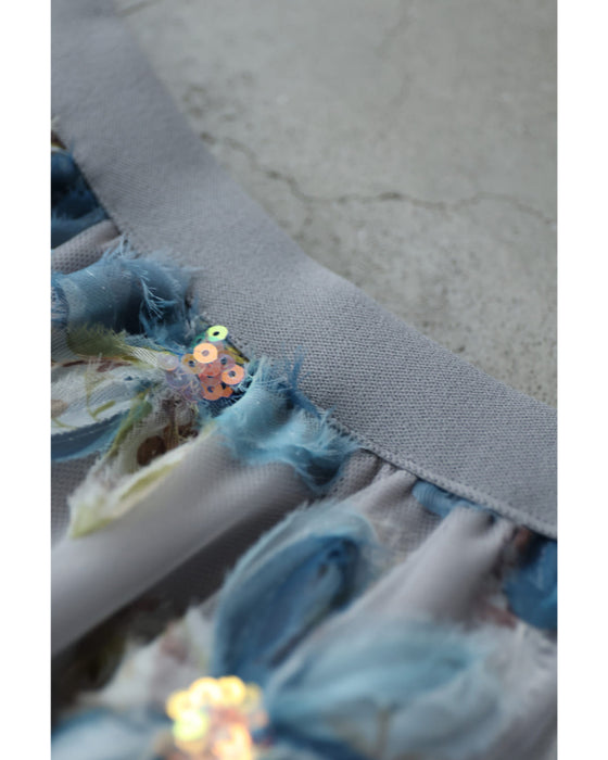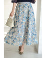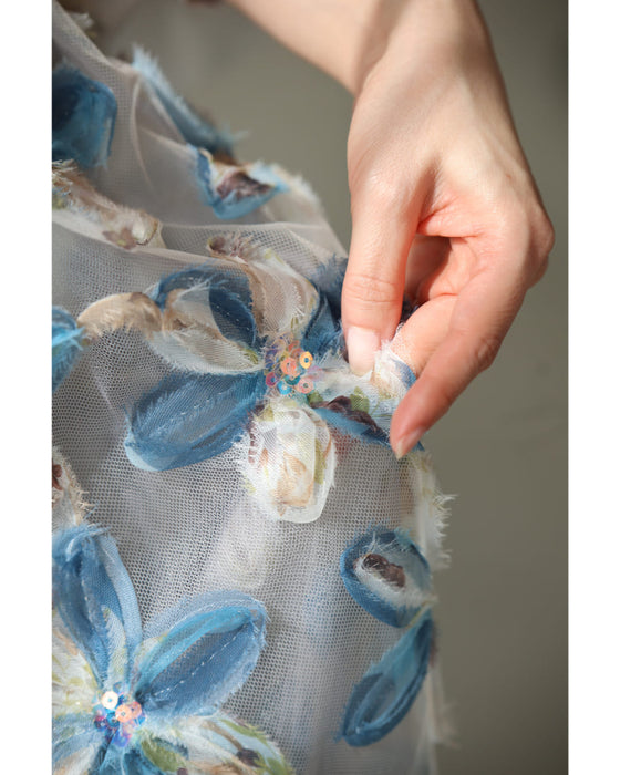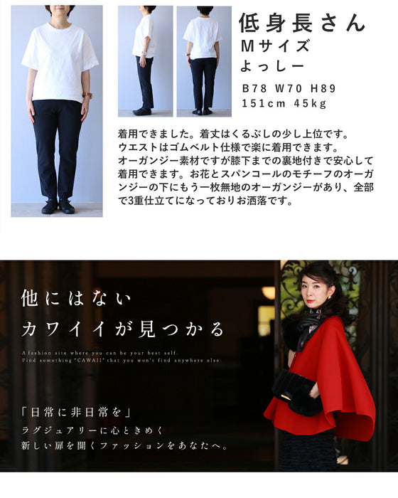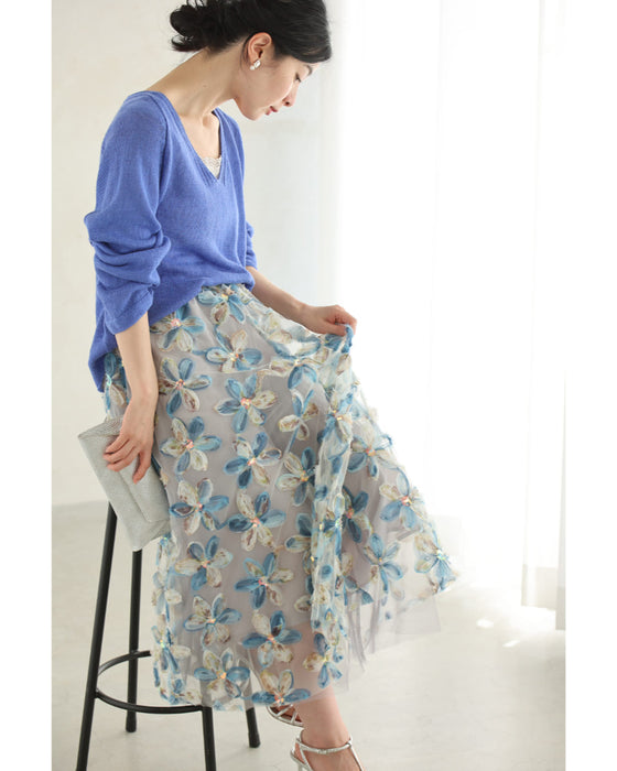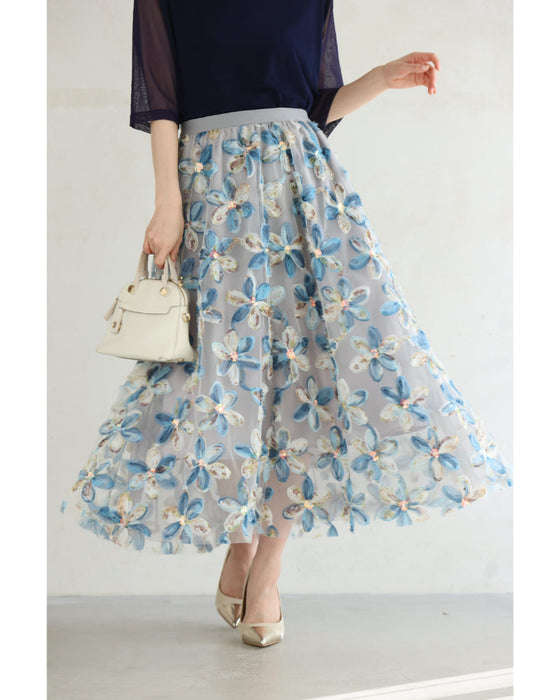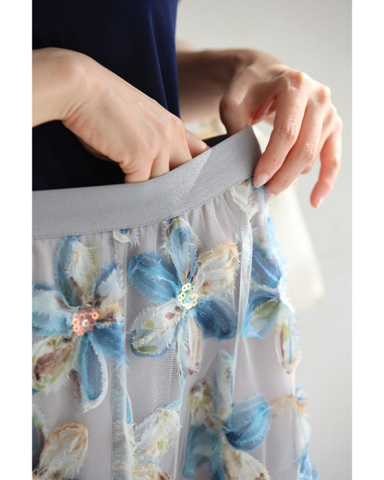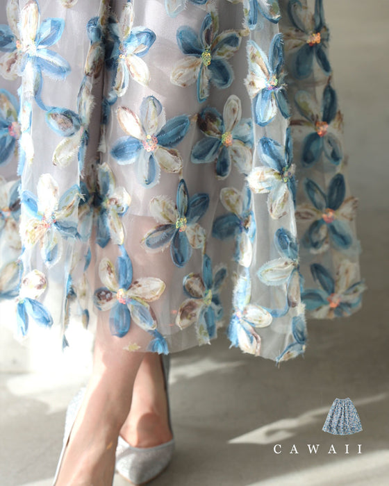 スパンコール輝く装飾花の2重チュールミディアムスカート
