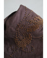 生地と調和する同色系ビーズが、上品な輝きを添えるデザイン。光を受けるたびにきらめき、シンプルな中にも精緻に描かれた存在感を放ちます。