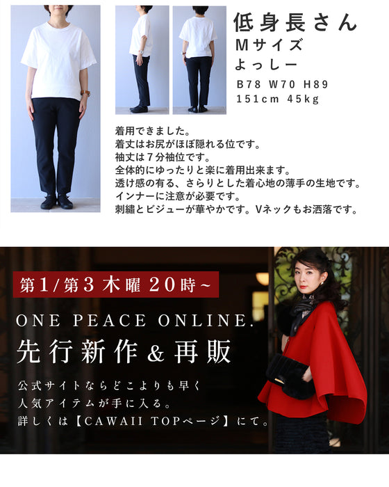 ゆったりとした身幅ながら、手首の見える絶妙な袖丈が抜け感を演出し、軽やかな印象に仕上がります。