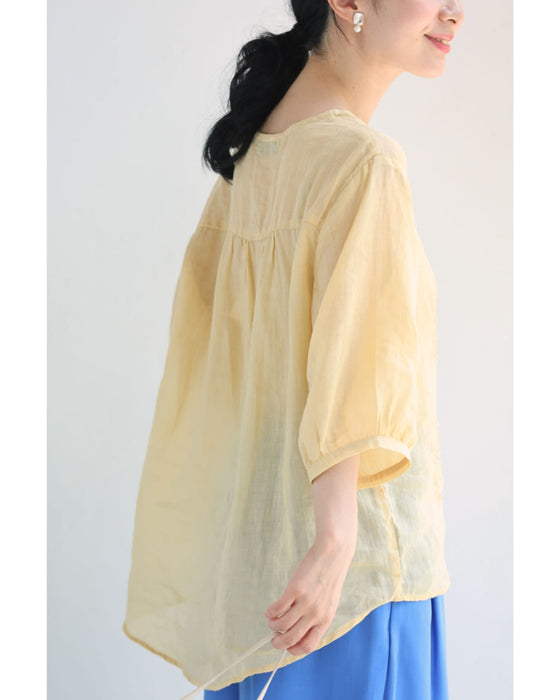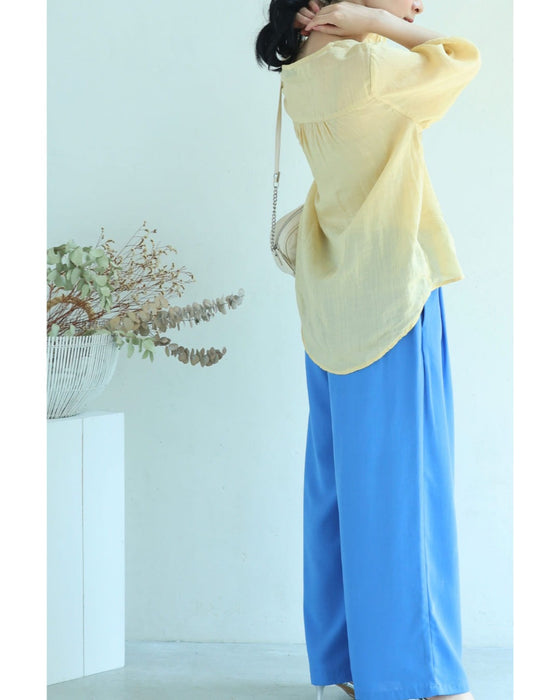 通気性に優れたリネンは、夏の暑さの中でもさらりとした肌触りで、着心地抜群。パンツにもスカートにも合わせやすく、きれいめカジュアルからリゾートシーンまで幅広く活躍する一着です。