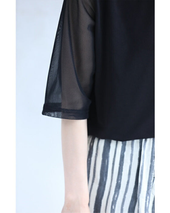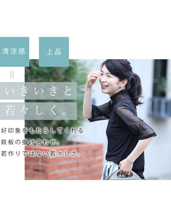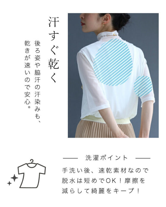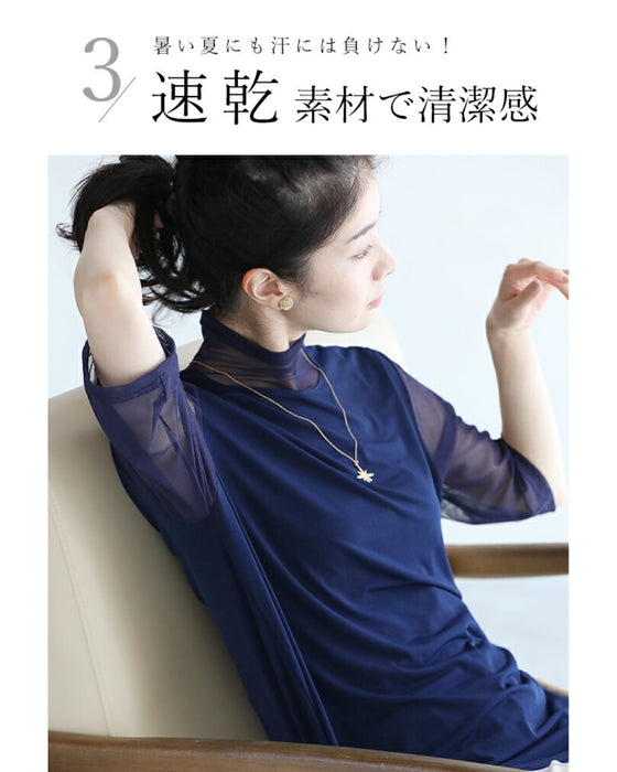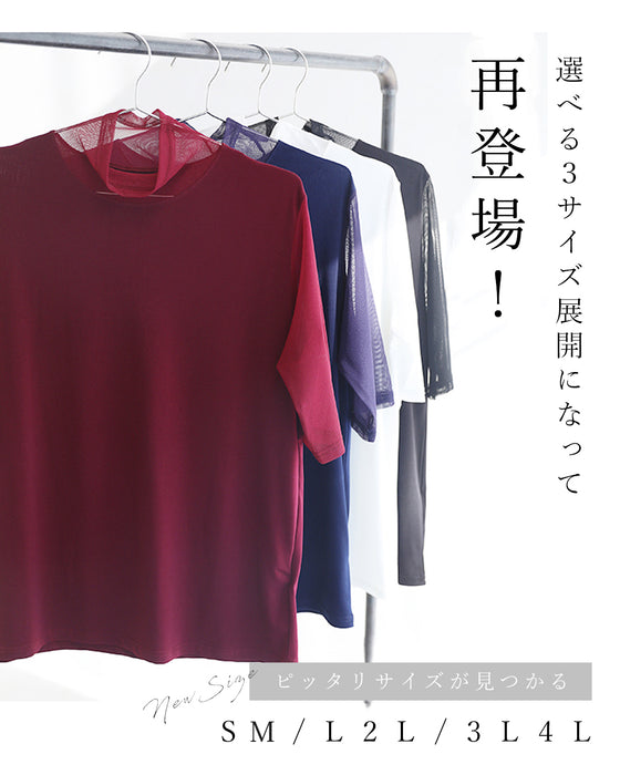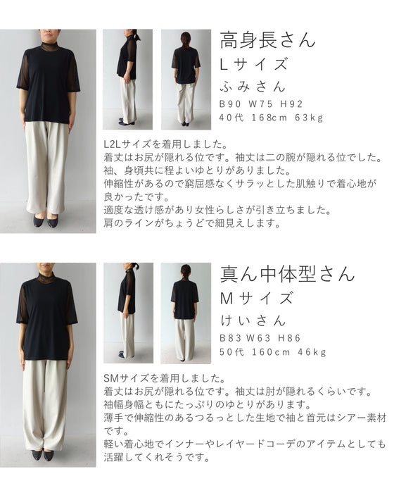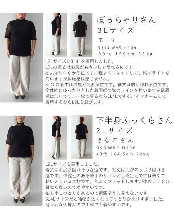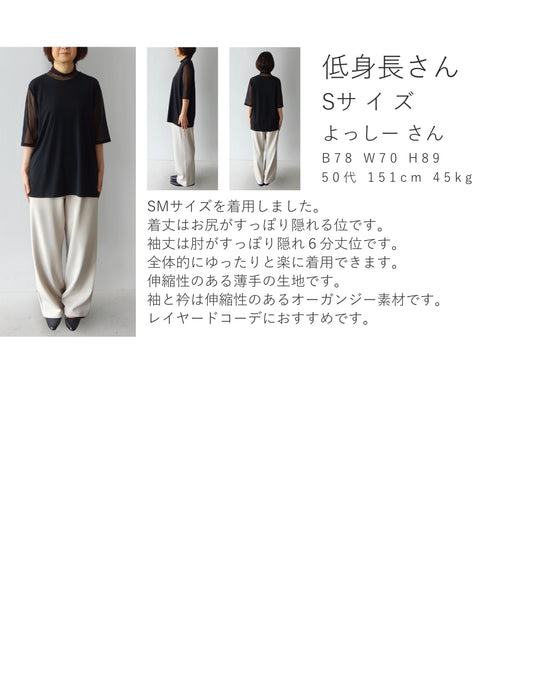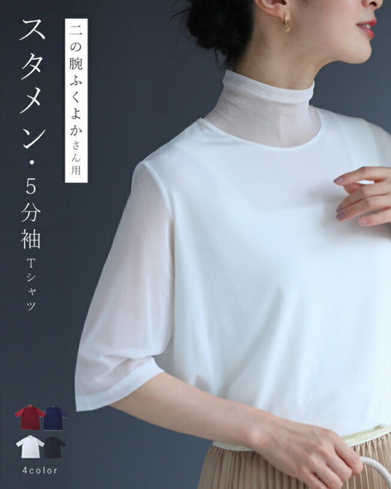 The sleeve length is 5cm, which hides the upper arms, and there is a moderate amount of room, so it is easy to move your arms without being too tight around the upper arms.
