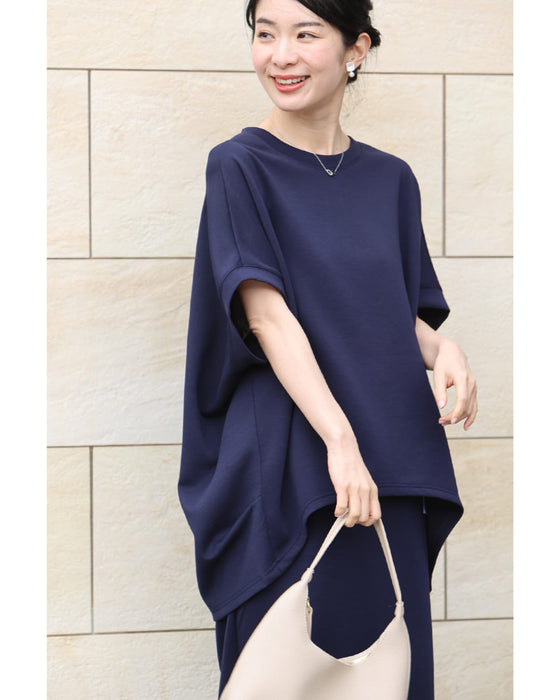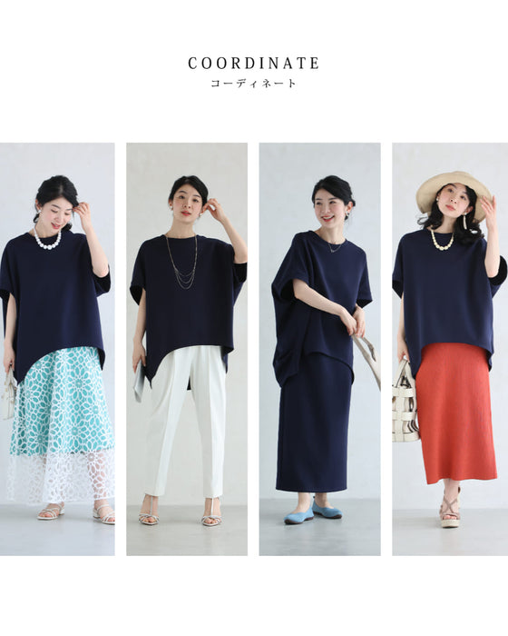 手触り肌触りも良く、体に優しくフィットしながらも窮屈感ゼロ!肩や腕周りがラクに動かせるので、ストレスフリーな着心地。腰周りの体型カバーも叶います。
