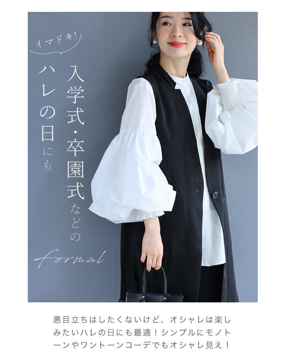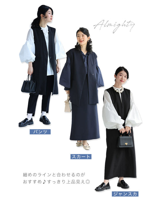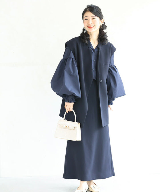 Recommended for those who like something unique and those who like simplicity! A simple and clean collarless design. The length hides the waist and hides your figure. Perfect for special occasions such as school entrance ceremonies and graduation ceremonies.