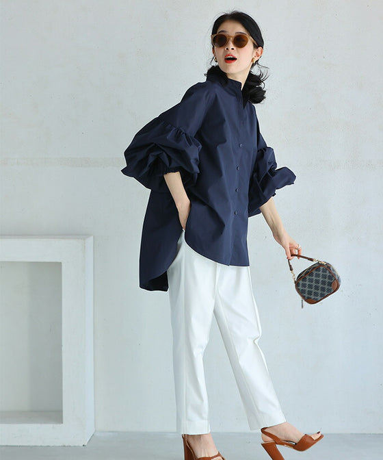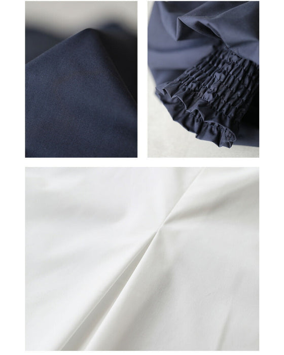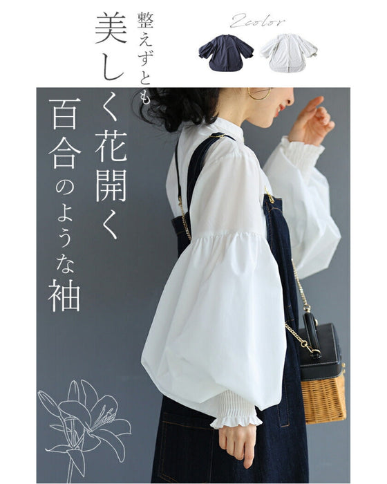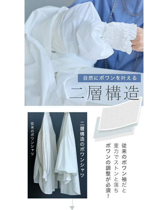 By using two layers of sleeves of different lengths, the outer fabric is left with more room, creating a natural puffed look. The sleeves are like beautiful lilies that bloom without any arranging.