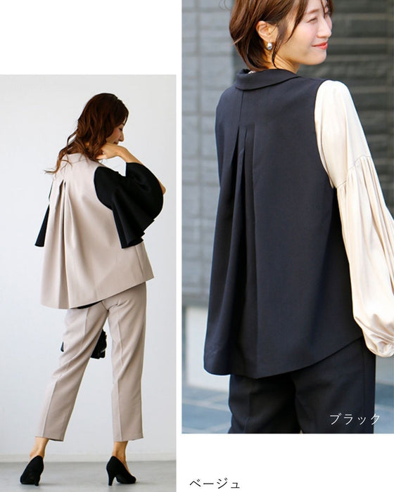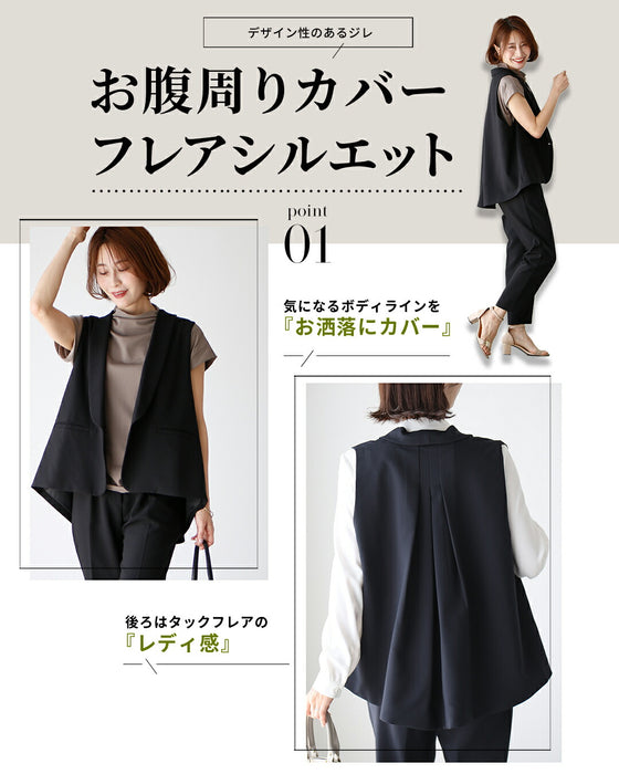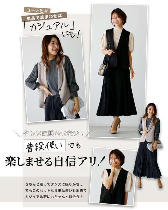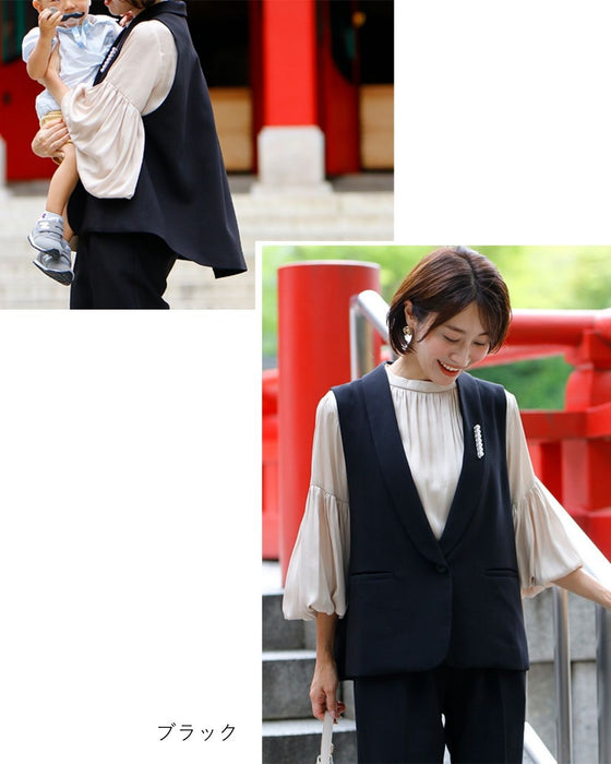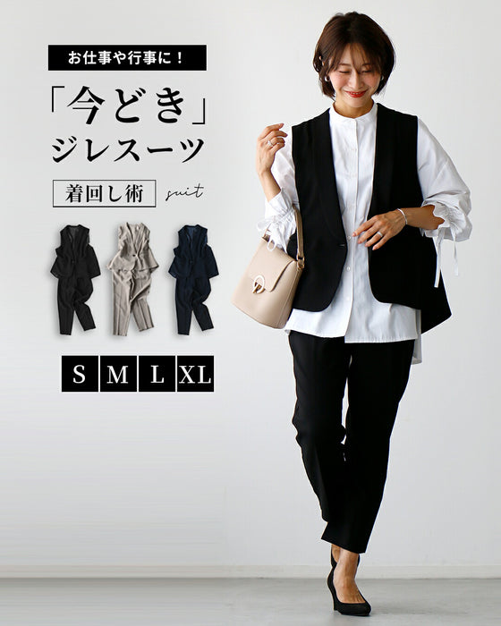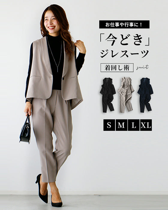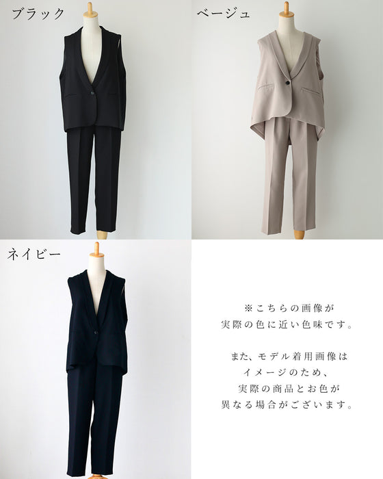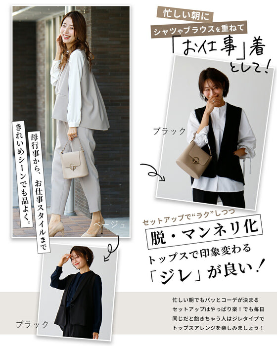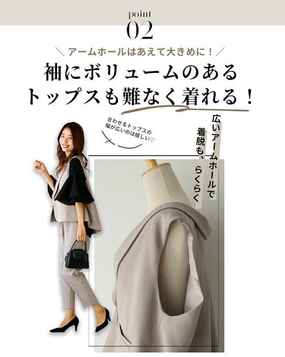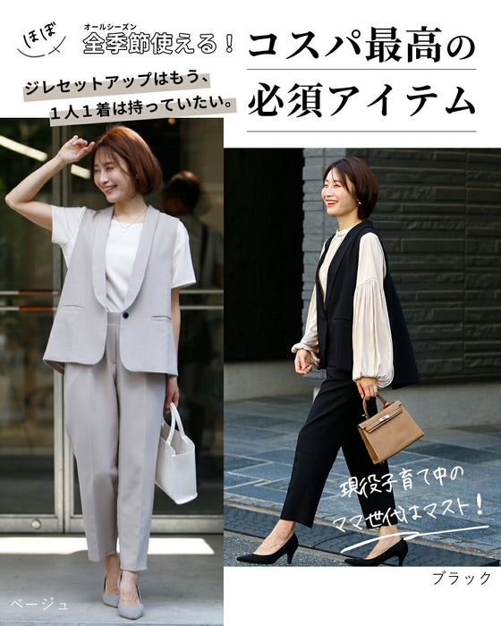 Gilet, set-up, suit, ceremony suit, entrance ceremony, kindergarten entrance ceremony, graduation ceremony, graduation ceremony, mom's suit, mother, 40s, mom, outfit, figure cover, formal suit, versatile, vest, pants suit, beige, black, spring, summer, fall, winter, petite, Ehrestyle, free size