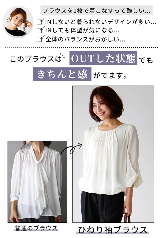 A soft, slightly sweet twisted sleeve blouse that can be worn without tucking it in!