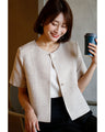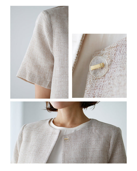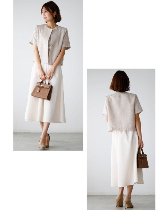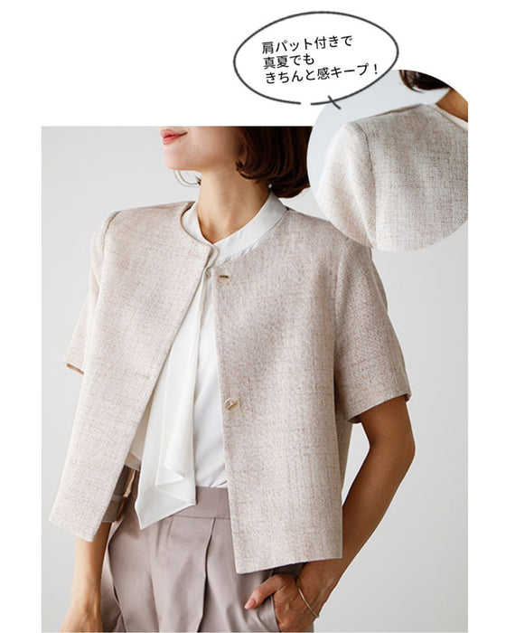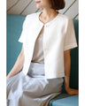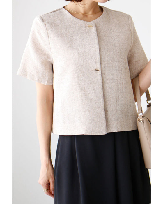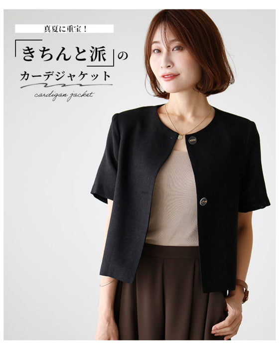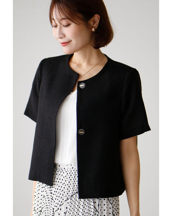 Light outerwear, outerwear, jacket, clear button, short, cardigan, white, beige, black, skin-colored, brown, black, ladies' cardigan, short sleeves, cool, figure-covering, neat, simple, plain, elegant, 40s, 50s, 60s, summer, summer clothes, summer items, Ehre style, style, Ehre style, petite, Ehrestyle