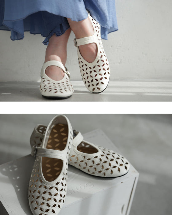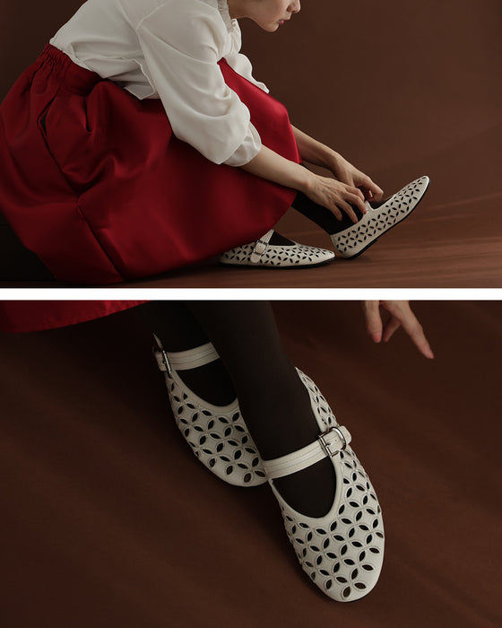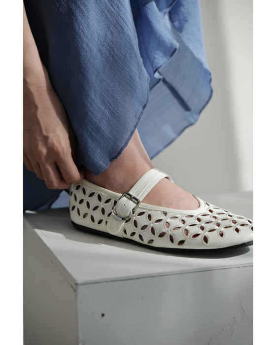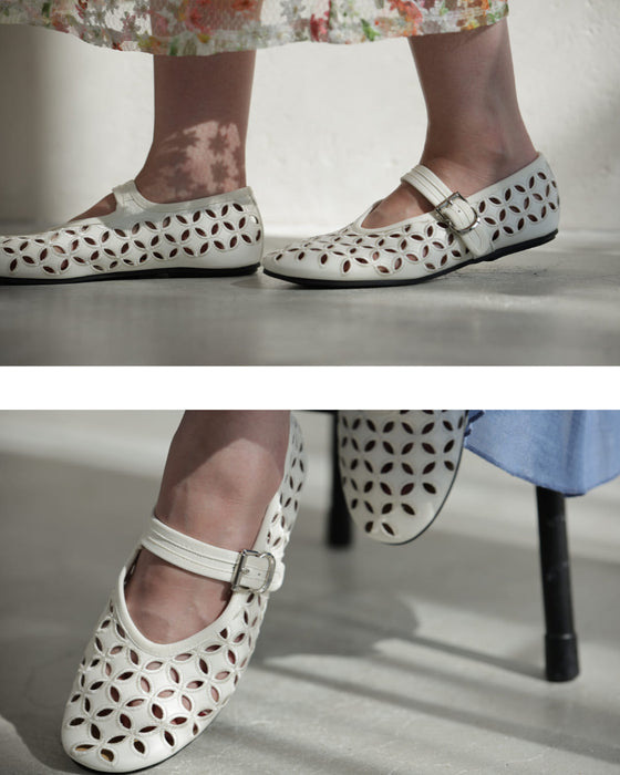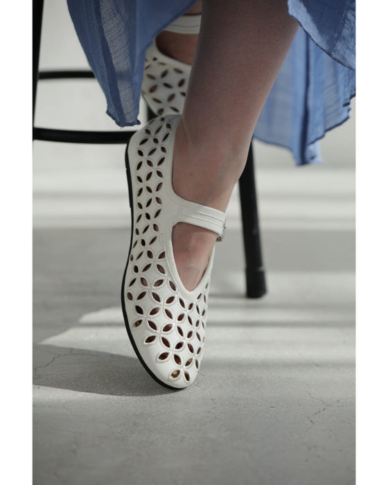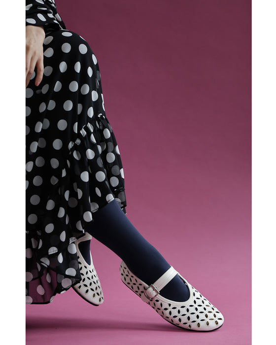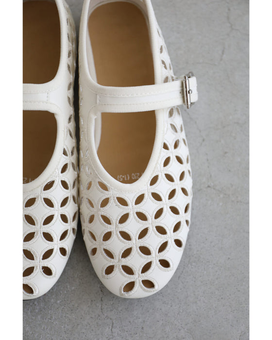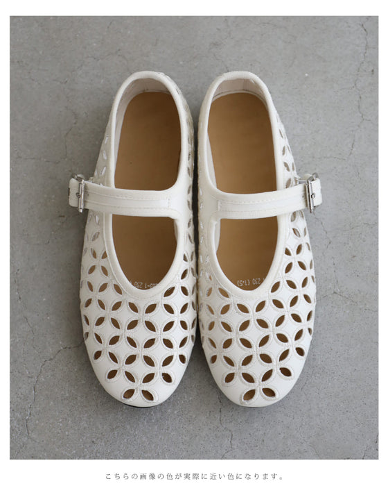 歩きやすい柔らかソールのパンチングフラワーパンプス