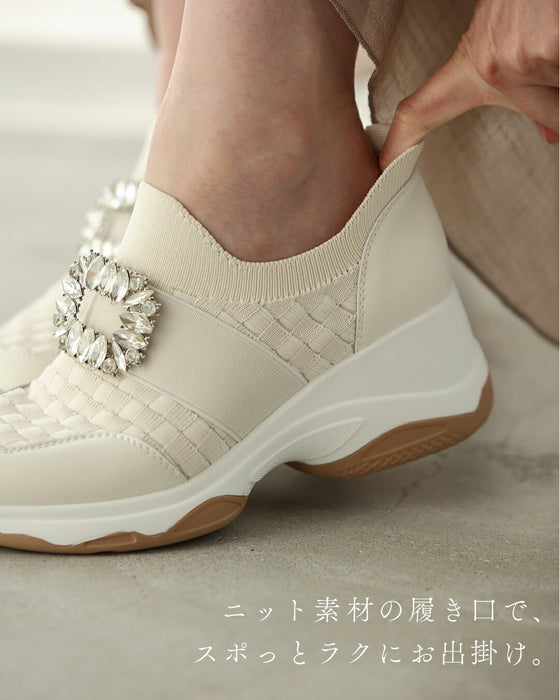 伸縮性のあるスニット素材を採用し、スポッと楽に履けるストレスフリーな着用感を実現。長時間歩いても快適で、デイリー使いにぴったりです。