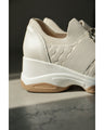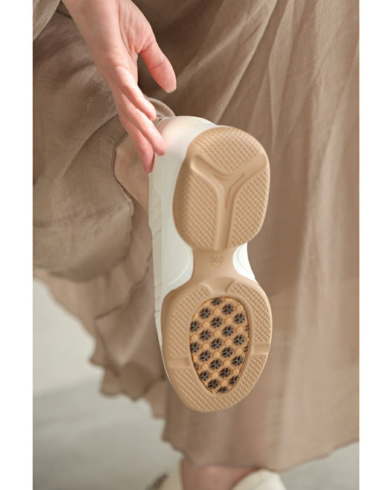 脚長効果のある厚底ソールがスタイルアップを叶え、女性らしいシルエットを引き立てます。
