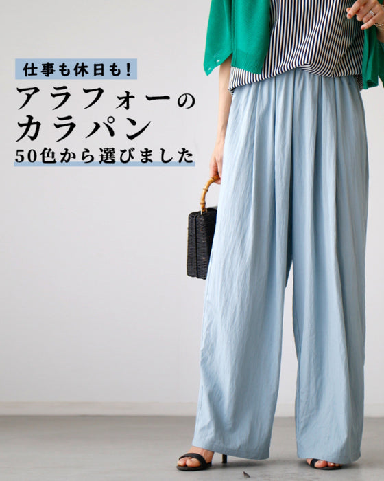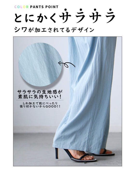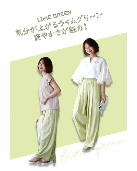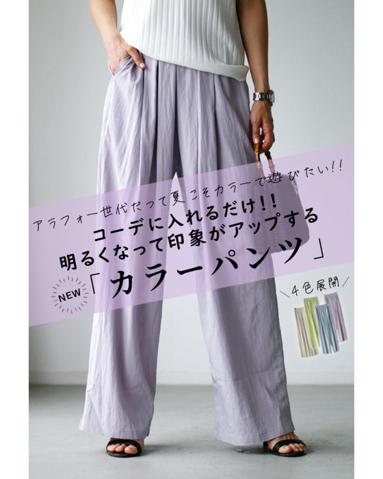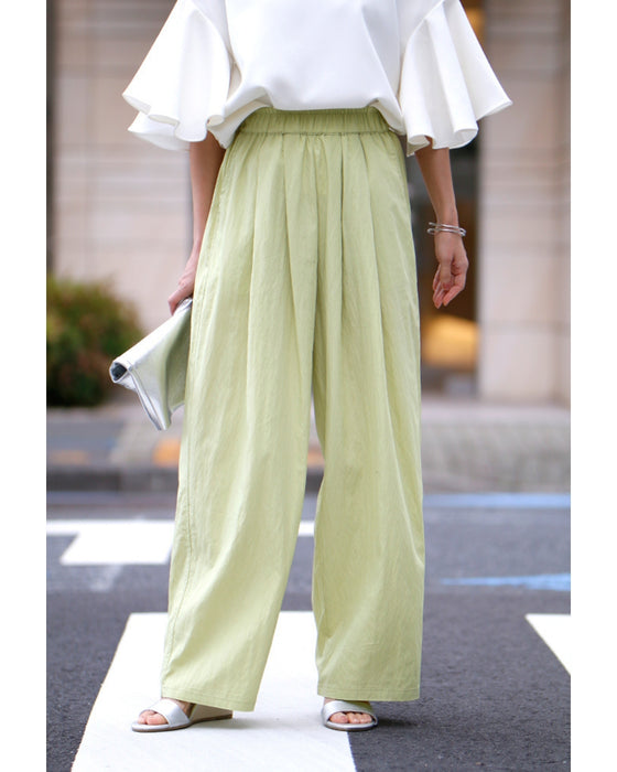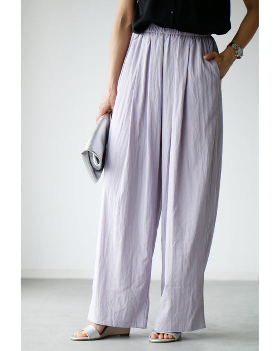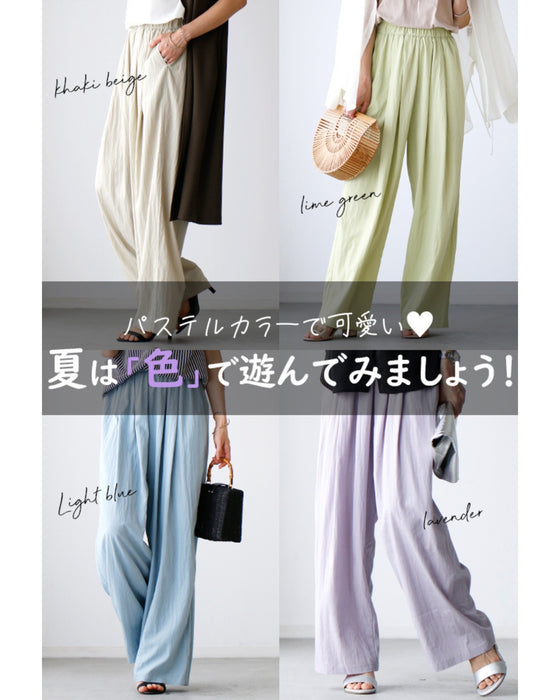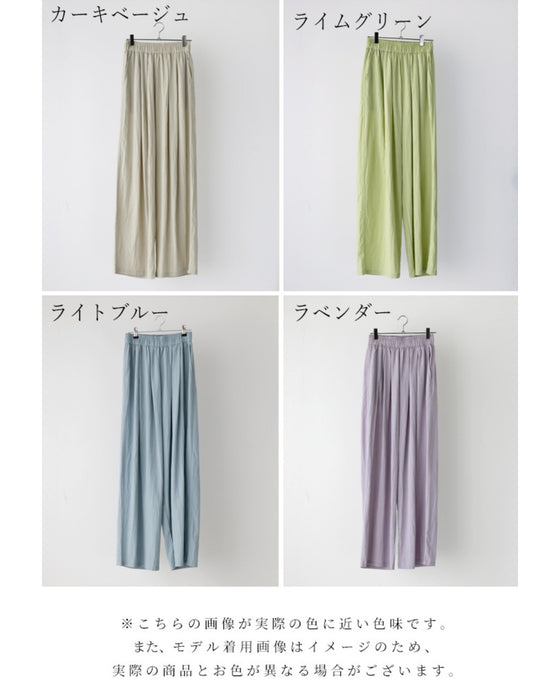 Pants, wide pants, color pants, color pants, wide straight pants, work, holidays, 40s, thin, cool, elastic waist, khaki beige, light blue, lime green, lavender, simple, plain, wrinkled, blue, purple, green, free shipping, Ehre style, style, Ehre style