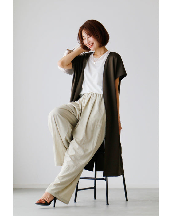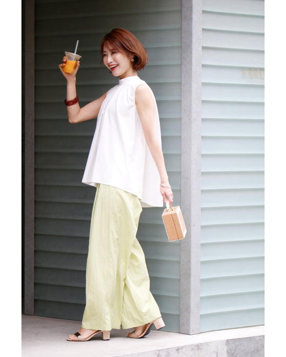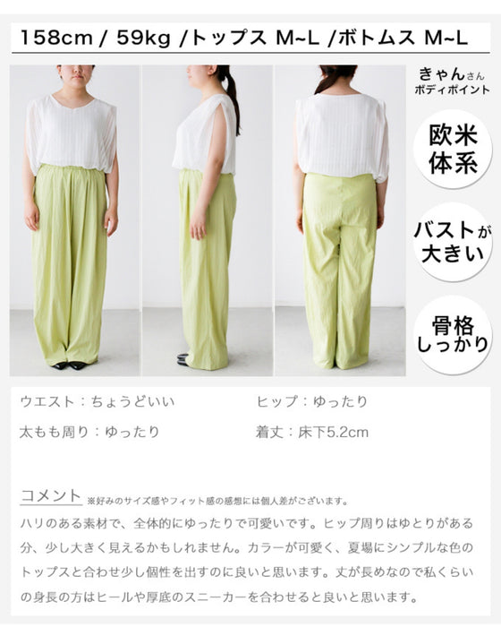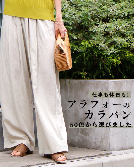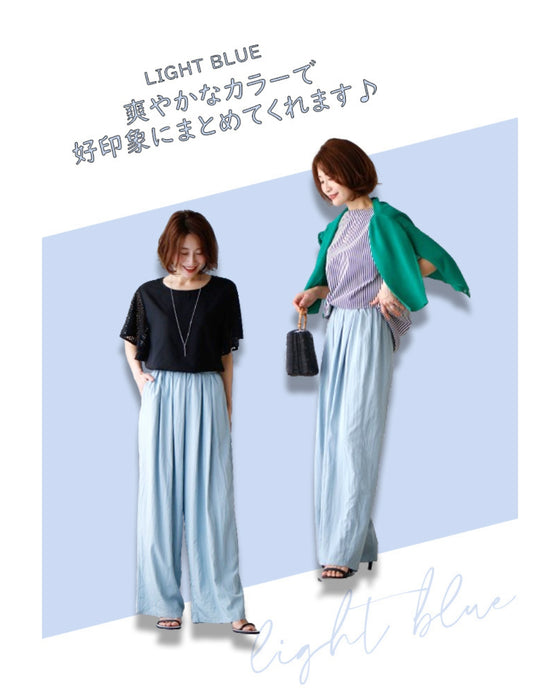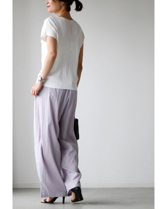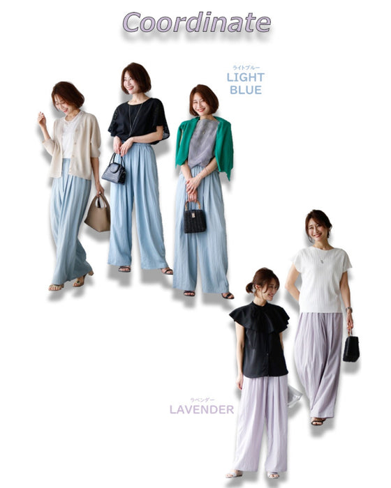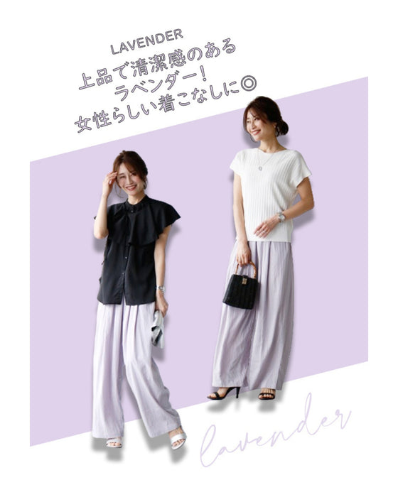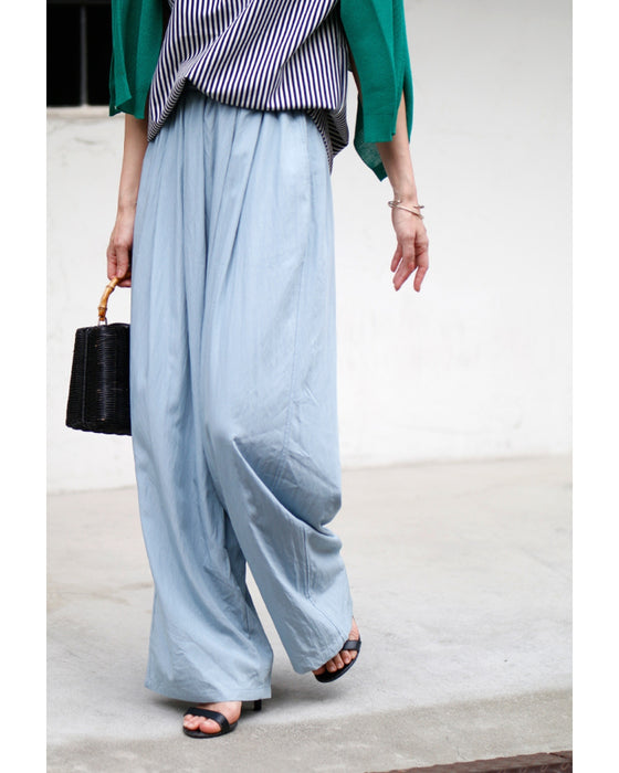 Pants, wide pants, color pants, color pants, wide straight pants, work, holidays, 40s, thin, cool, elastic waist, khaki beige, light blue, lime green, lavender, simple, plain, wrinkled, blue, purple, green, free shipping, Ehre style, style, Ehre style