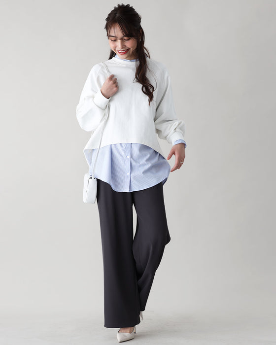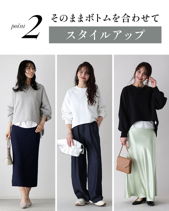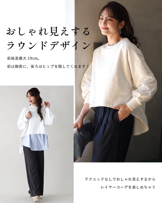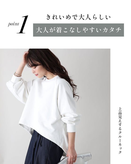 スエット プルオーバー ラウンドスエット ラウンド きれいめスエット 綺麗みえ 大人スエット かぶって着る ブラック グレー ホワイト gray black white 灰色 黒 白 無地 春 秋 冬 フリーサイズ レディース ファッションEhre style エーレスタイル 小柄さんもOK Ehrestyle