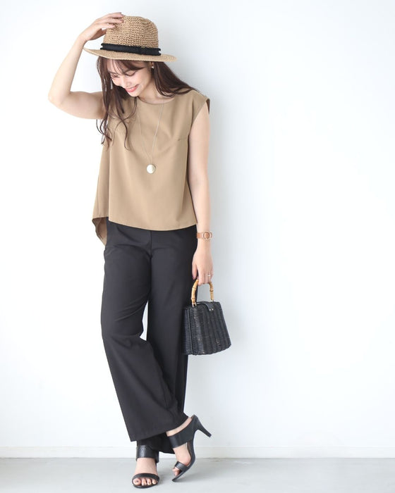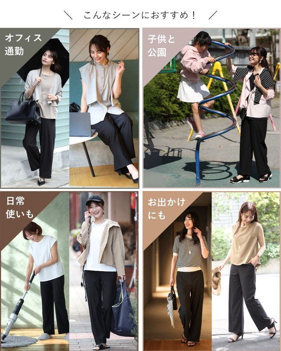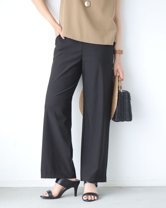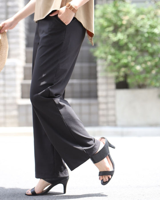 パンツ ボトムス ワイドパンツ UVカット 長ズボン パンツ サイズ展開 M L LL ポケット 吸水速乾 ゆったり 高機能楽 丸洗い 伸縮性 ブラック Black 黒 春 夏 秋 オフィス カジュアル キレイめ ボトム レディース ファッション Ehre style スタイル エーレスタイル