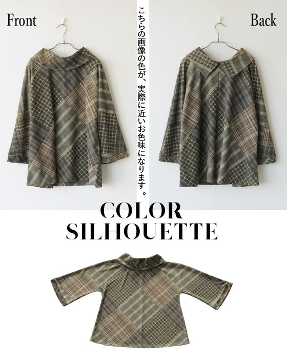 ■パッチワーク風のMIXチェック柄とフレアな袖で大人可愛い一枚に。