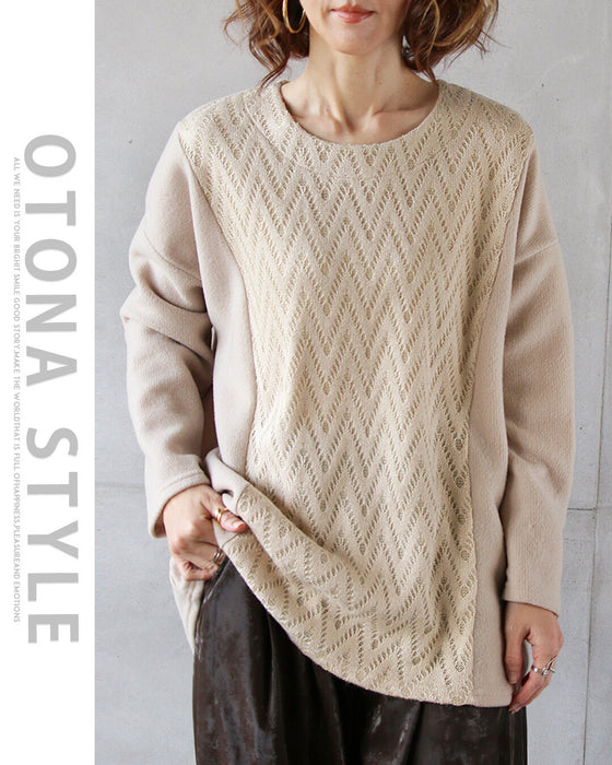■It looks great on its own! A knitted shirt with different materials that looks elaborate. A classy accent that stands out in a simple one-tone outfit. The knit pattern is not too sweet, so it can be used for a wide range of occasions, from casual to going out.