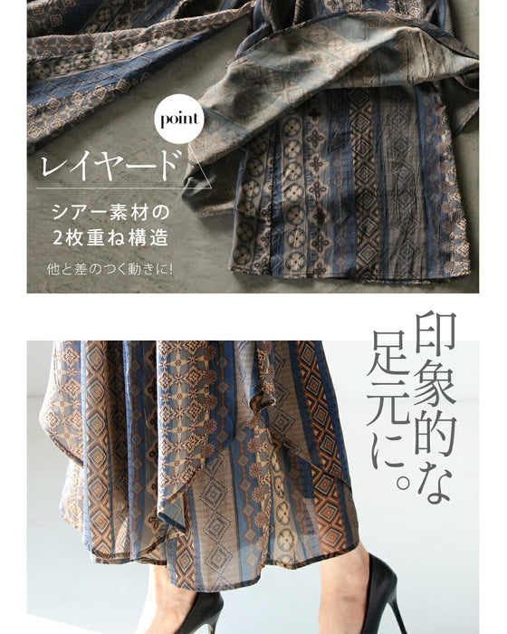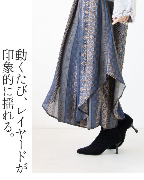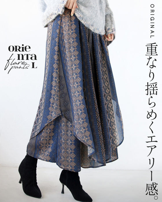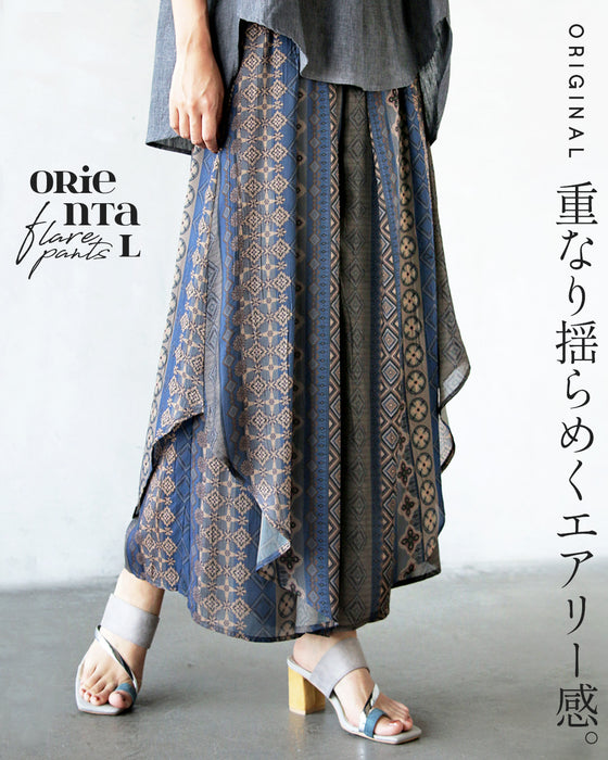 動くたび揺れるエレガントなレイヤードフレアパンツに