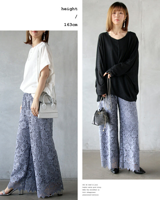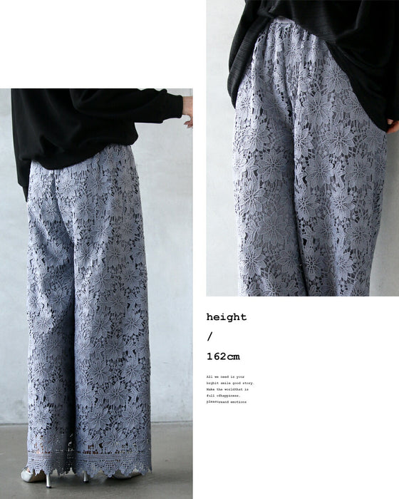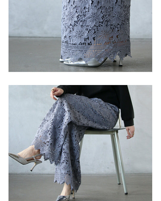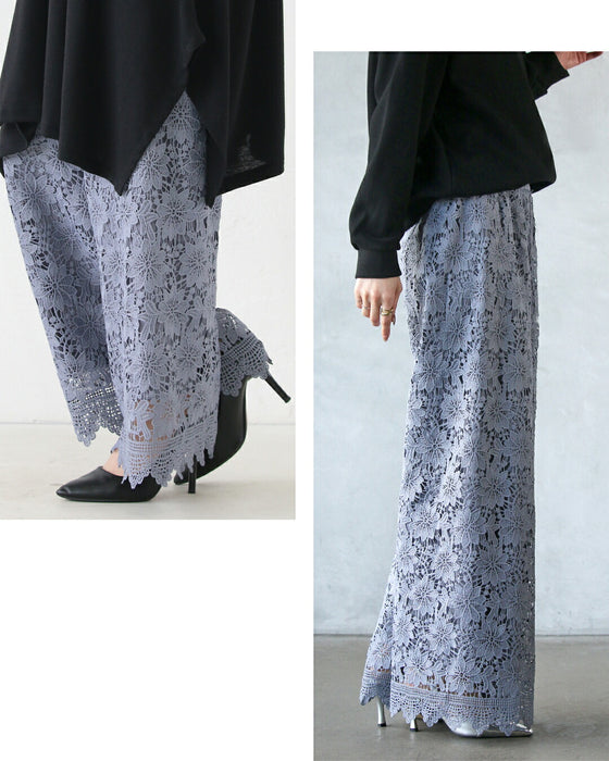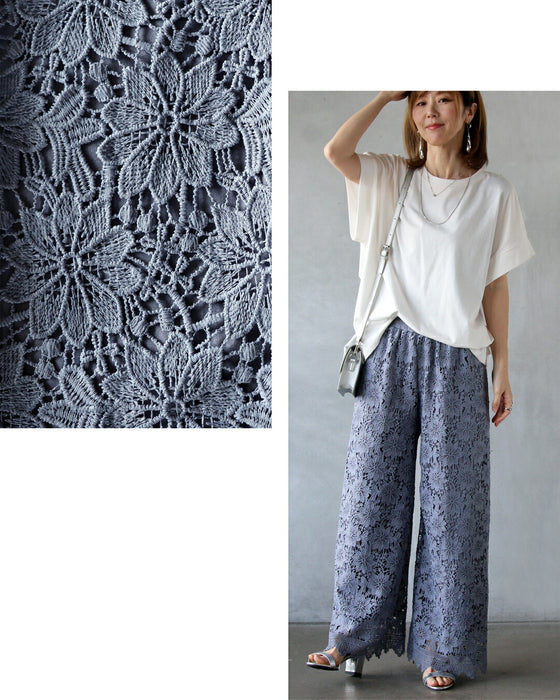 カッコ綺麗なグレーフラワーレース×フレアパンツ