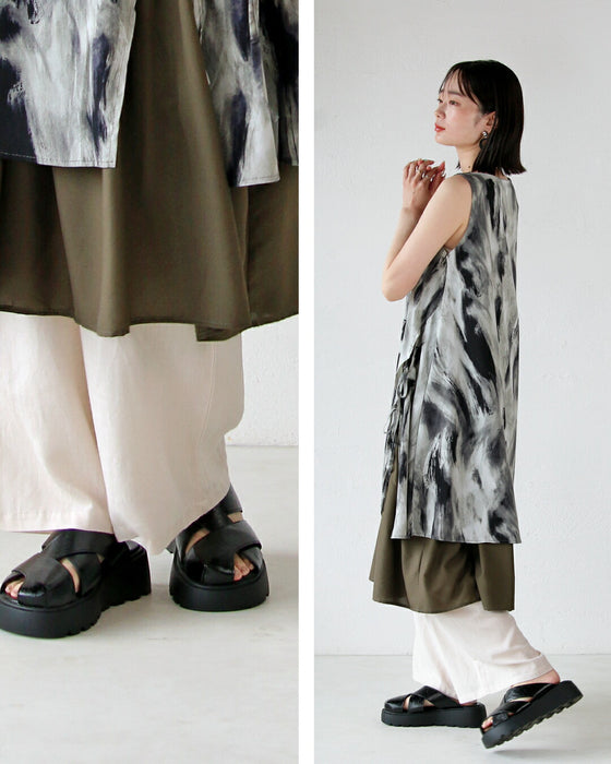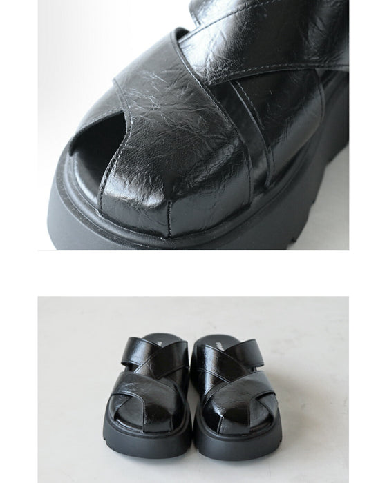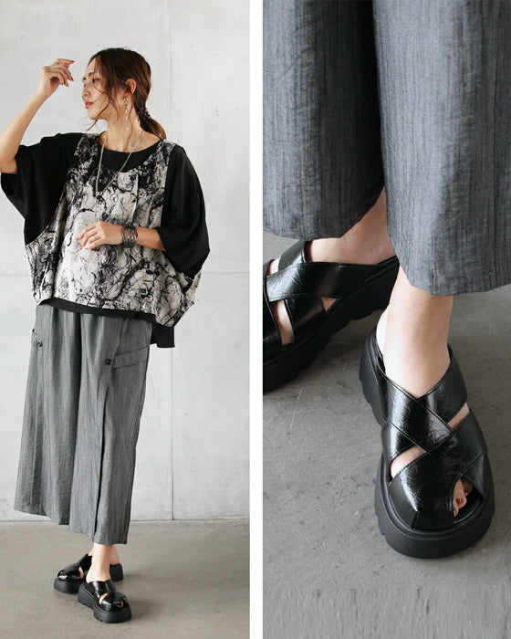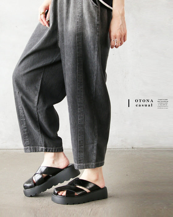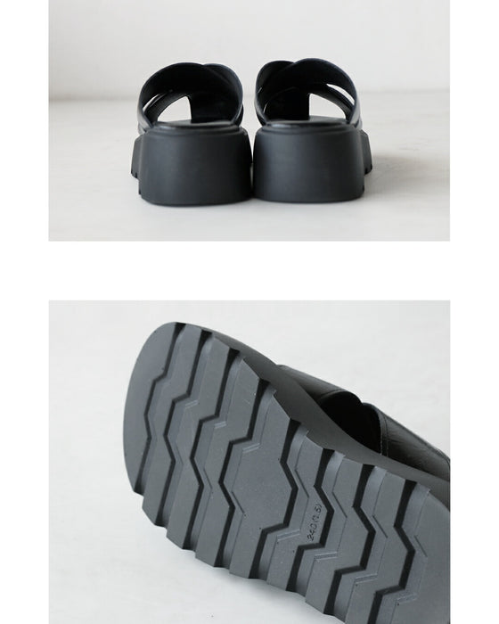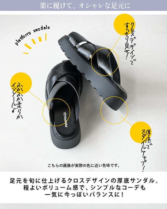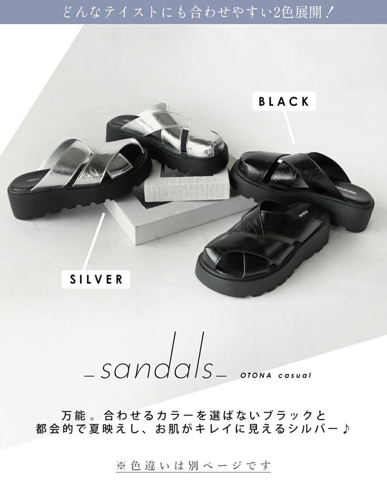 足元を旬に仕上げるクロスデザインの厚底サンダル。程よいボリューム感で、シンプルなコーデも一気に今っぽいバランスに仕上げてくれます。