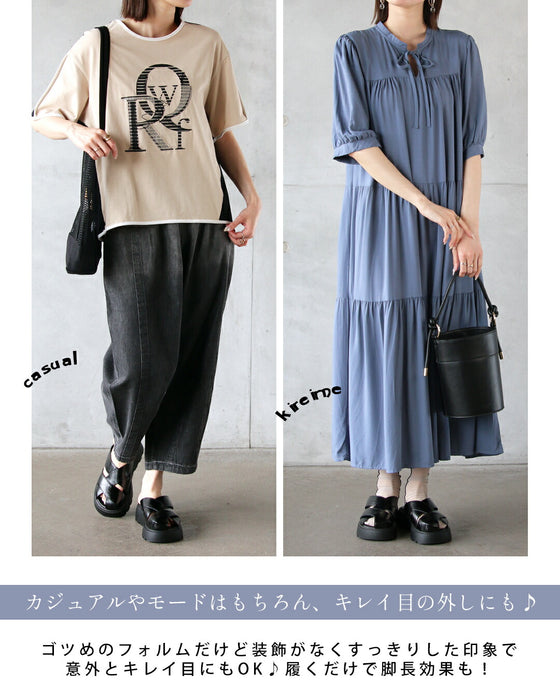 ワイドパンツやロングスカートに合わせるだけで、足元に抜け感と旬のボリュームをプラス。