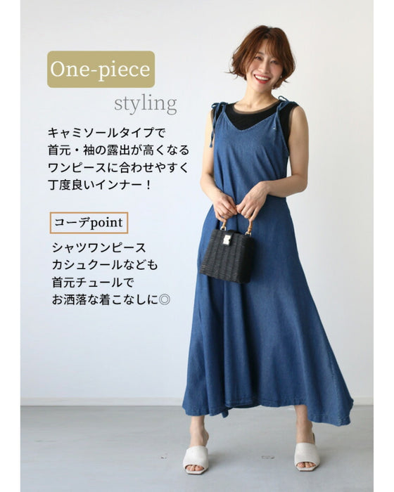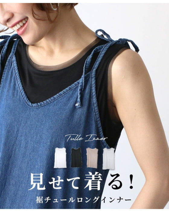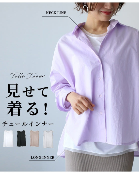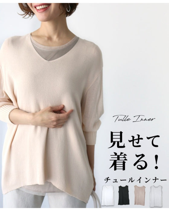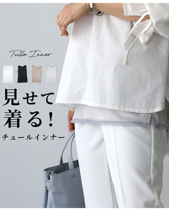 Sleeveless tank top for women, innerwear, tulle tank top, neck, sleeves, hem, layering, basic, standard design, all seasons, women, Ehre style, spring, petite, Ehrestyle