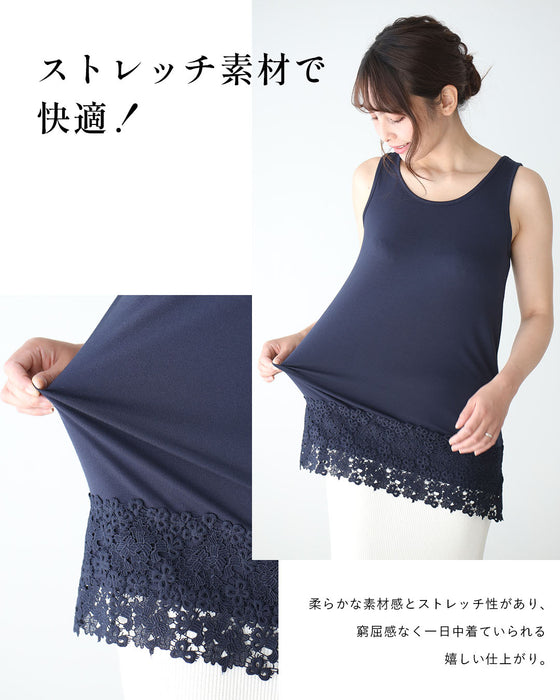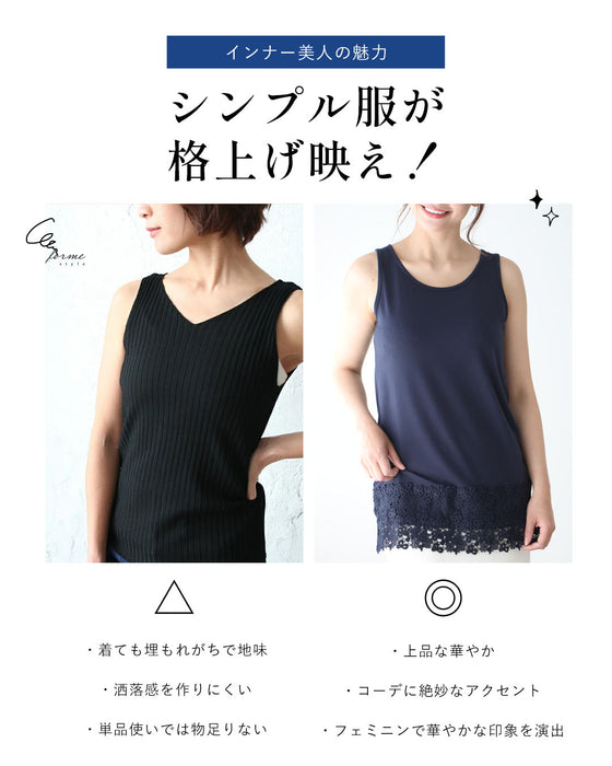 インナー タンクトップ 映える レース 裾ちょい足し レースインナー ホワイト ネイビー ブラック white navy black 白 黒 濃紺 裾レース 刺繍 お洒落 丸首 柔らかい フリーサイズ オールシーズン レディース ファッションEhre style スタイル エーレスタイル