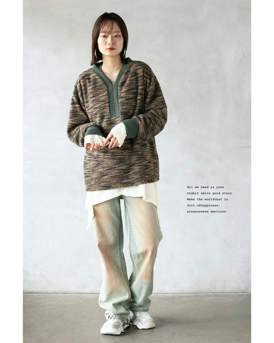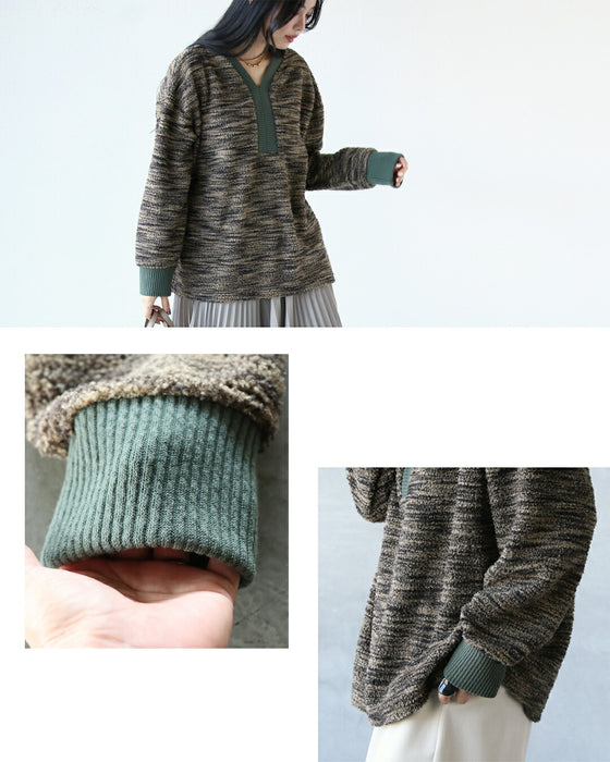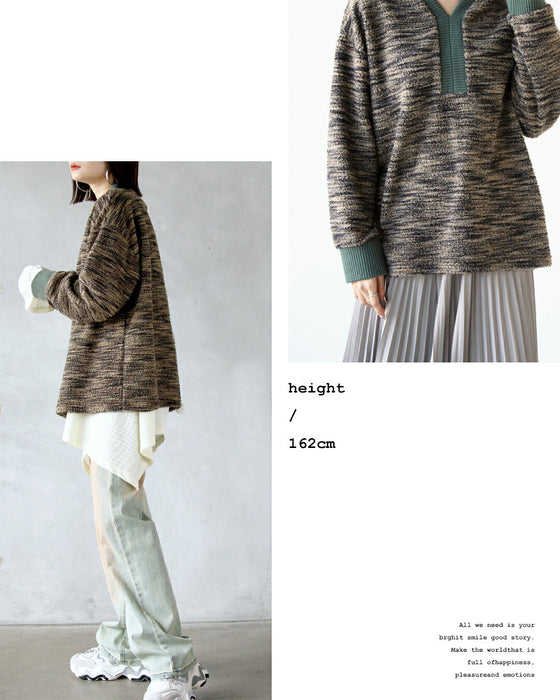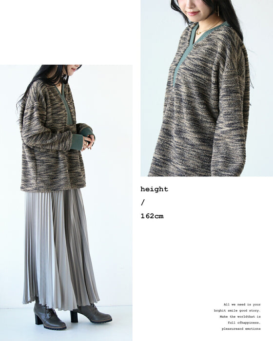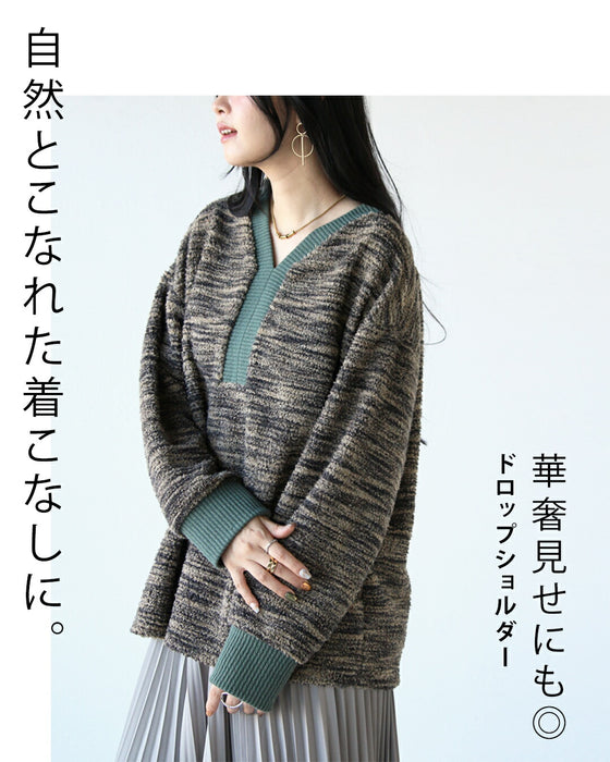 The ribbing around the neck and cuffs gives the loose silhouette a finishing touch.