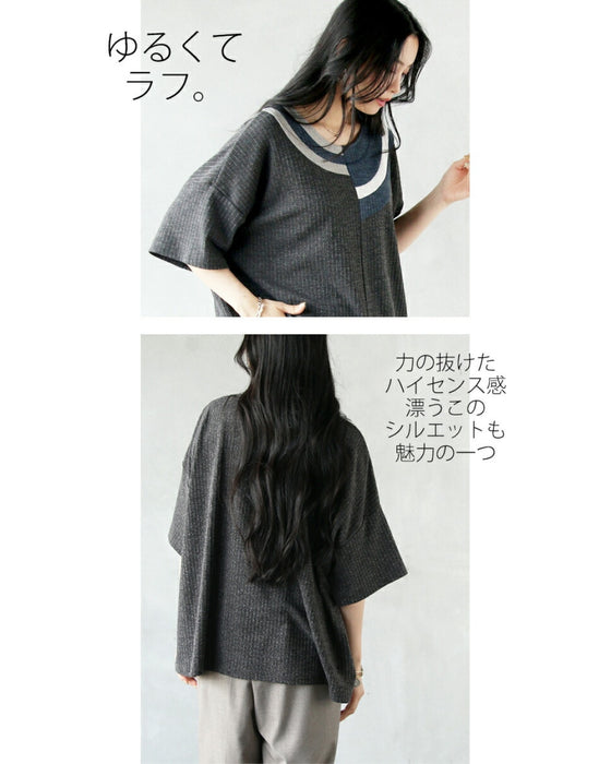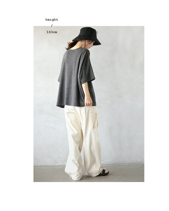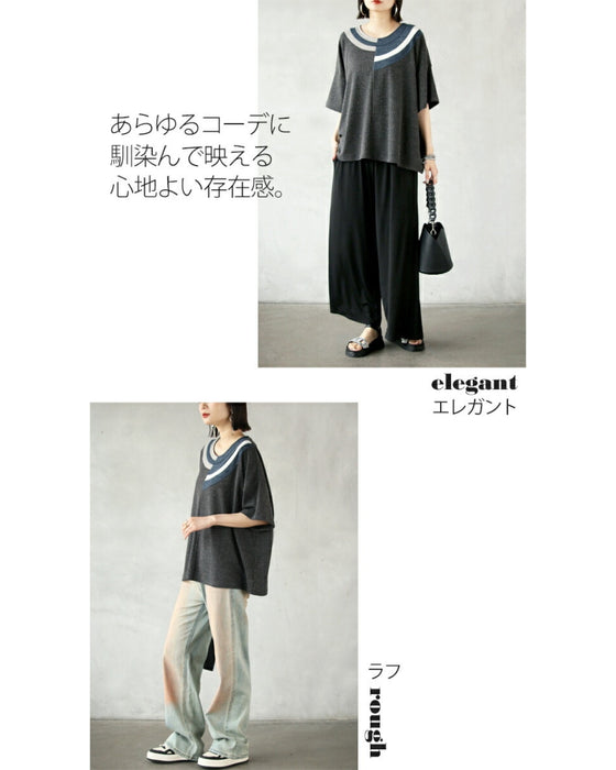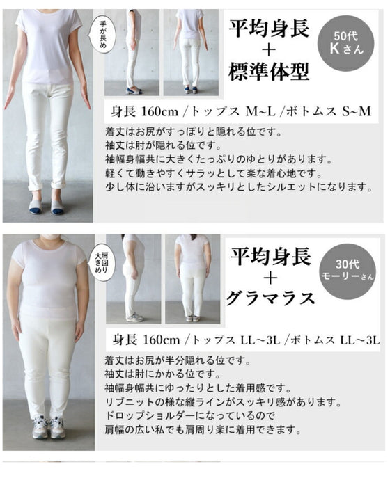 This is a comfortable summer knit with a smooth, non-brushed feel. The high-quality texture gives it a soft impression, making it a fabric that you can enjoy for a long time from spring to autumn.