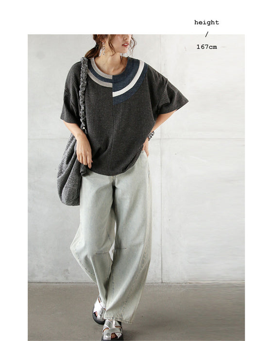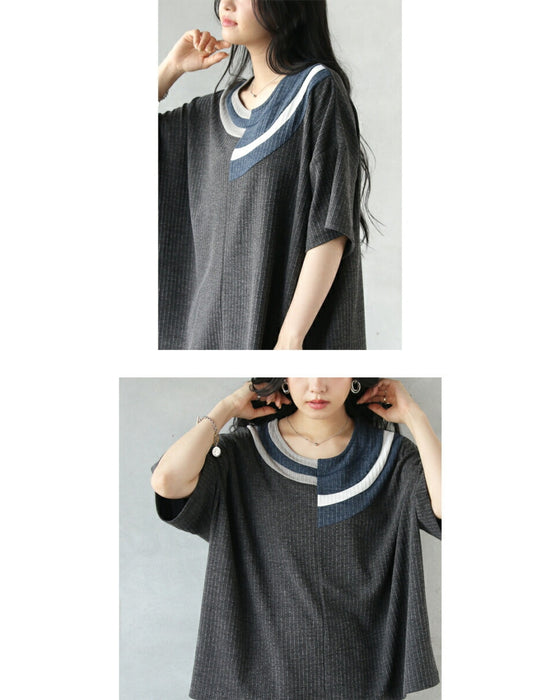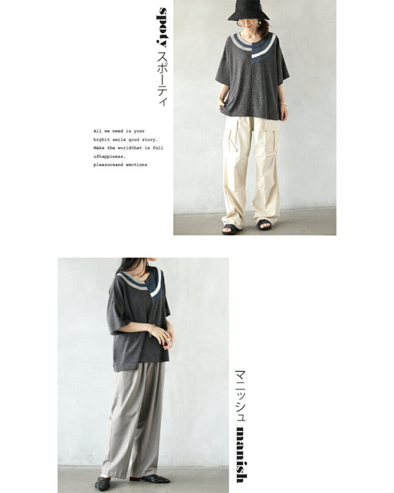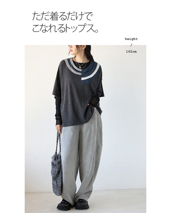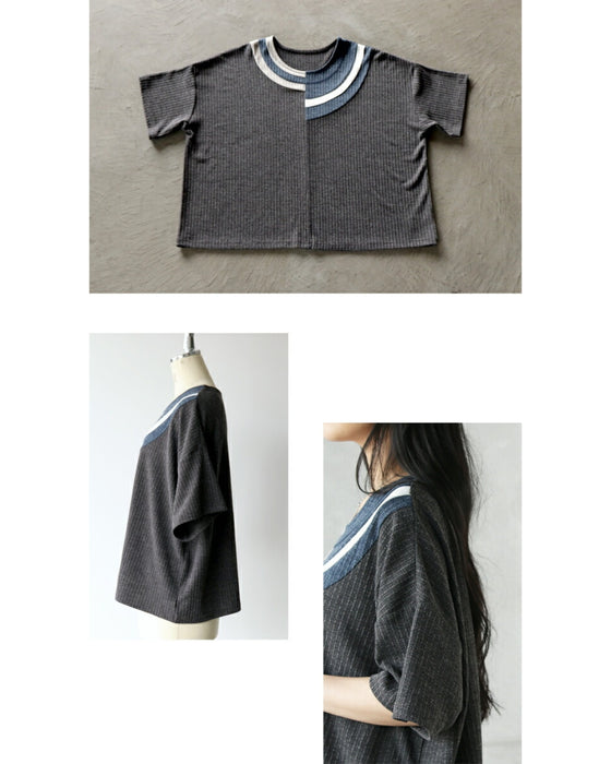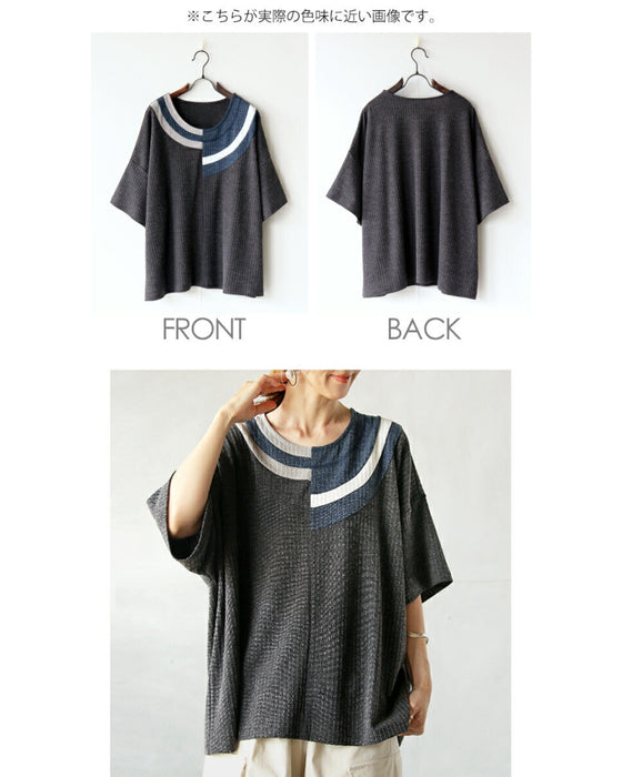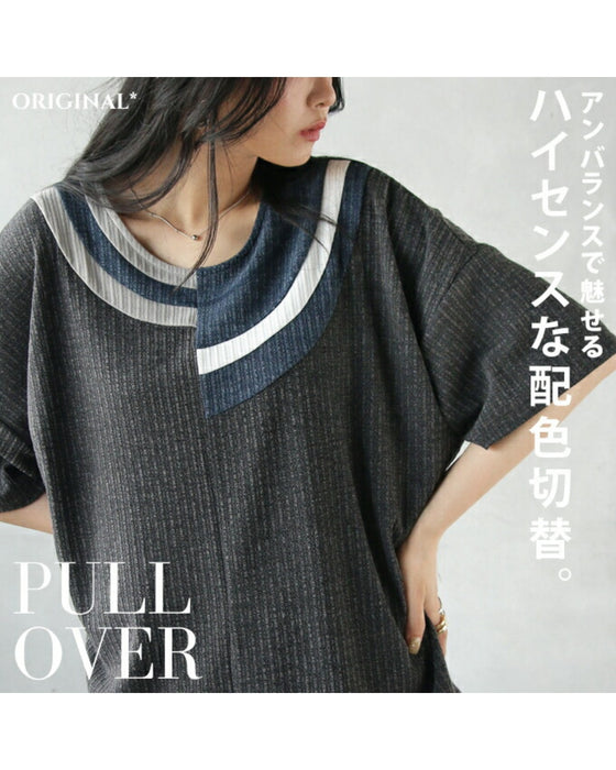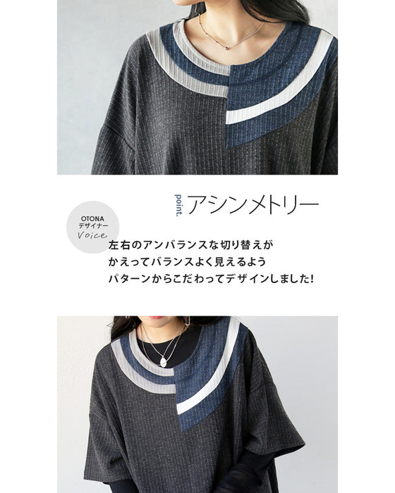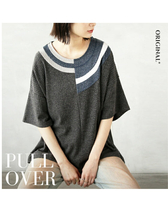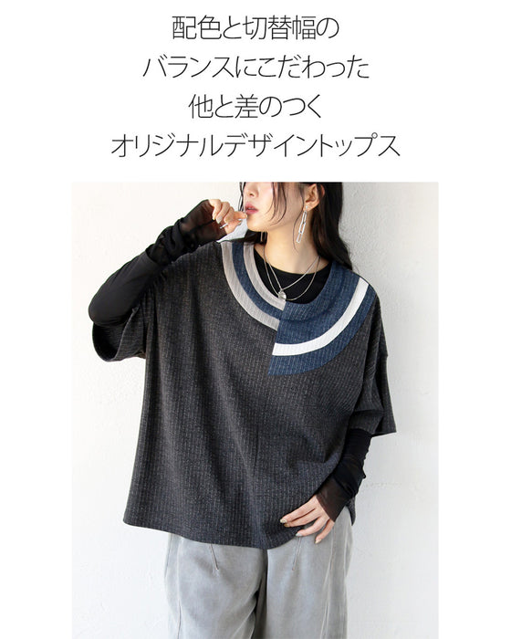 ■An original design top with a distinctive neckline color scheme and asymmetrical cut . The vague smoky color is attractive and can be worn all year round.