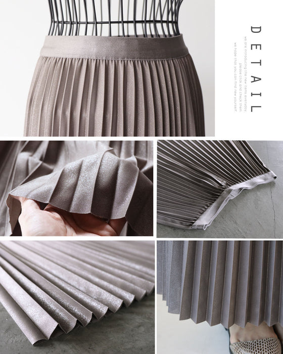 ■小さなラメがギラつかず、さりげなくシックに煌めく上品なプリーツスカート。大人コーデの主力のカラーになるニュアンスを効かせた大人っぽい色味がトレンド感満点。