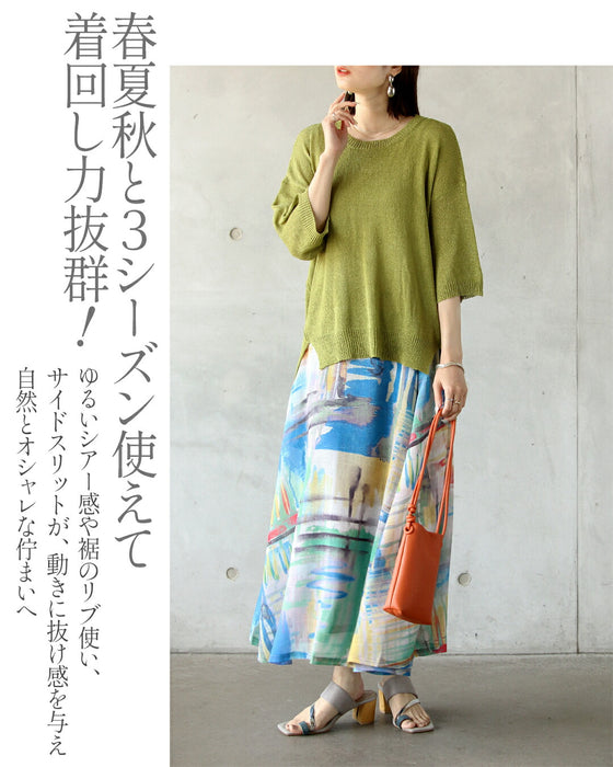 ゆるいシアー感や裾のリブ使いやサイドスリットが、動きに抜け感を与え