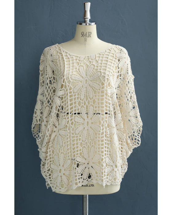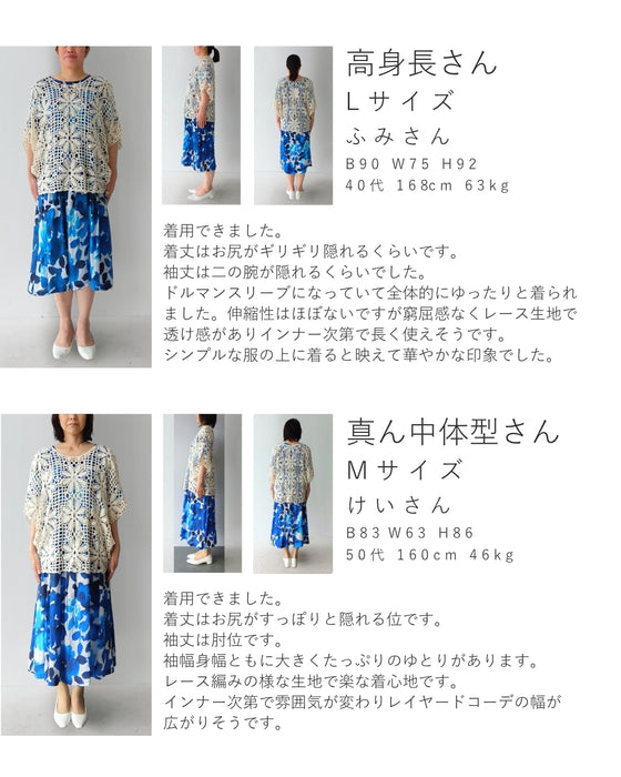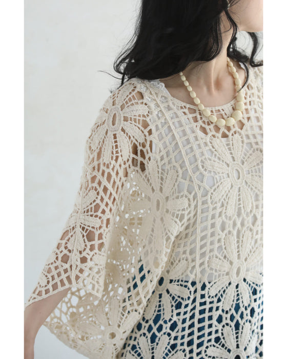 連なる花のドルマンクロシェプルオーバートップス
