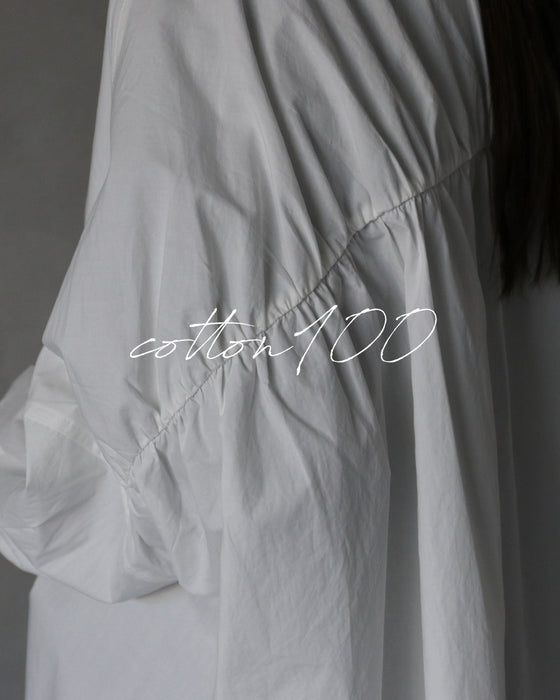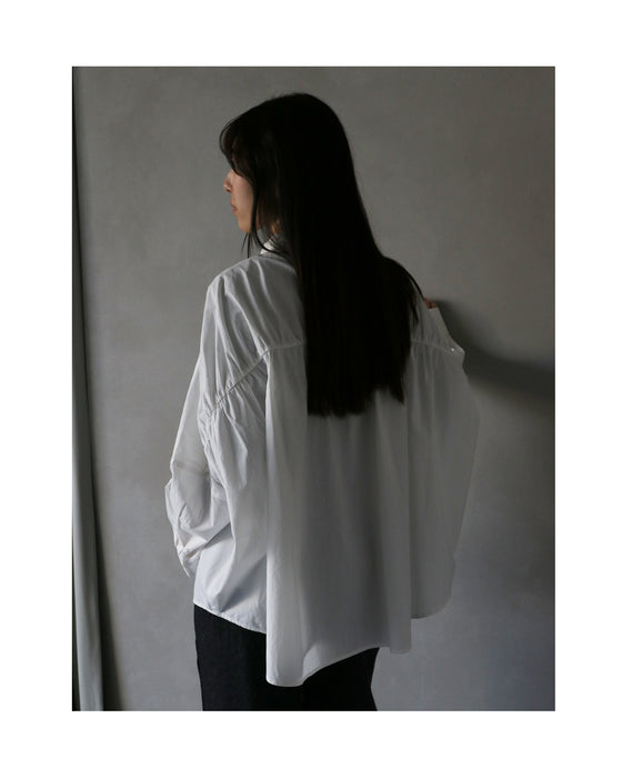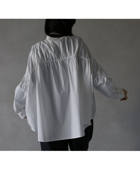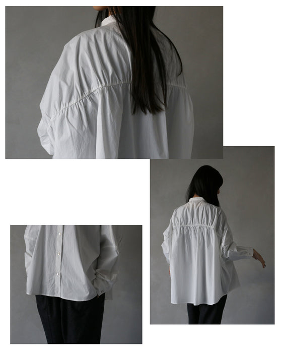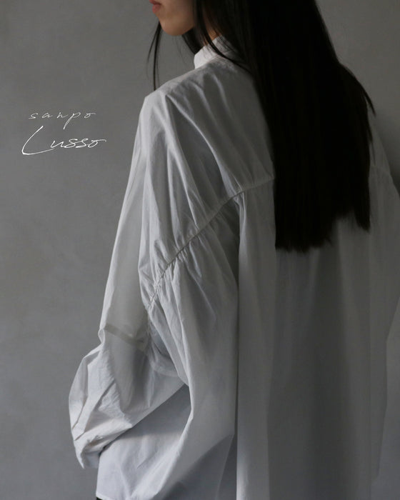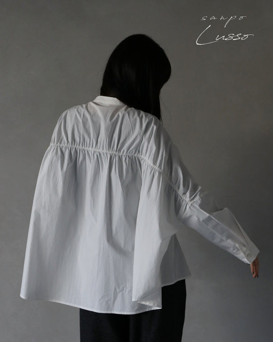 【SANPO LUSSO】綿ワッシャーバックギャザーシャツ