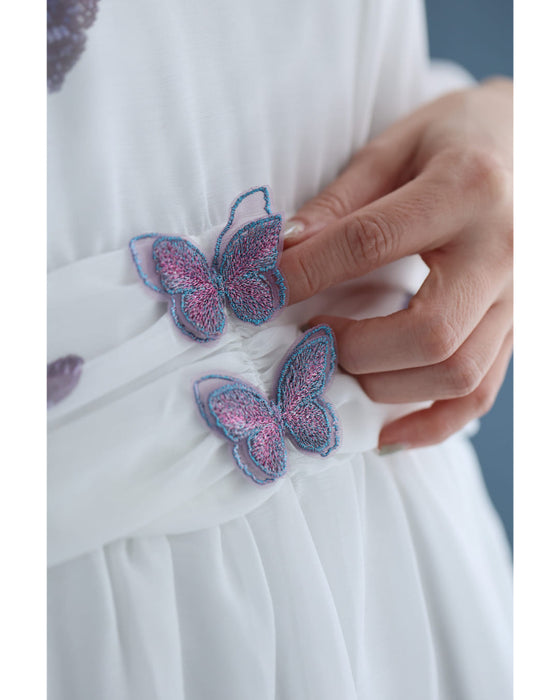 繊細な柄が女性らしさを引き立て、やわらかな印象を与えてくれます。上品さと可憐さを兼ね備えた大人の女性にぴったりのアイテムです。